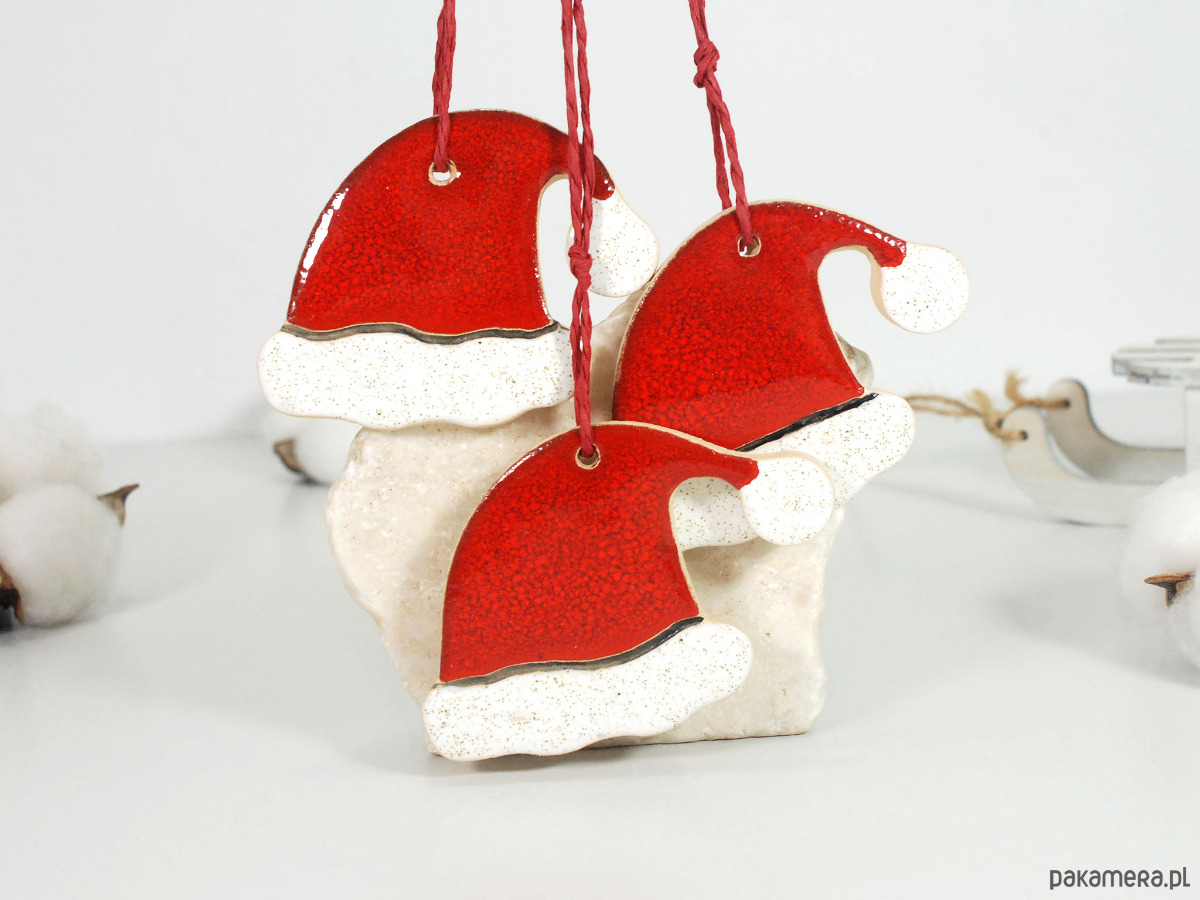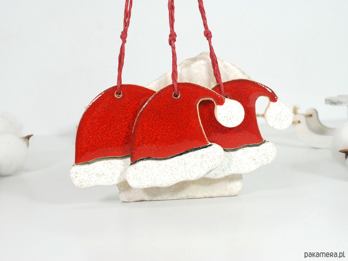 Ceramiczne czapeczki Mikołaja - ozdoby ceramiczne