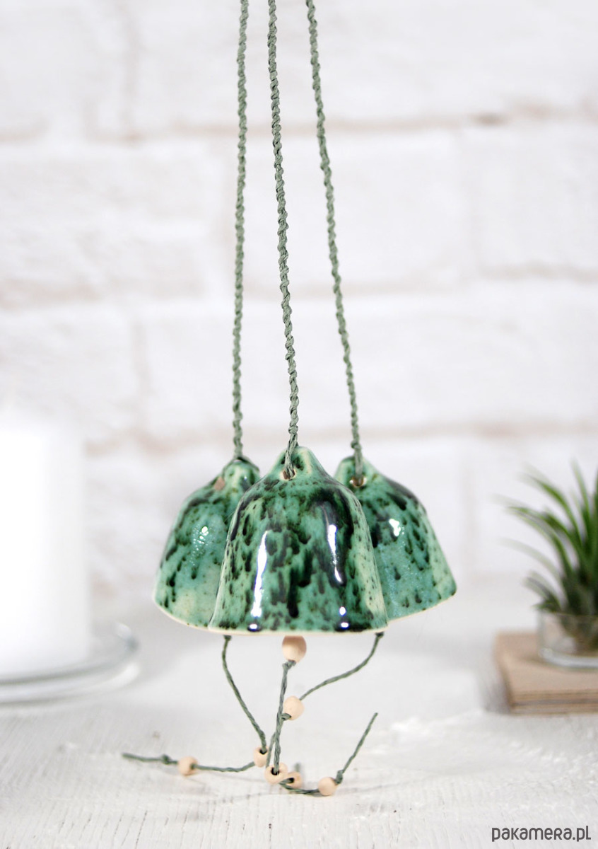 Zestaw zawiera 3 ręcznie robione i malowane, ceramiczne dzwonki.