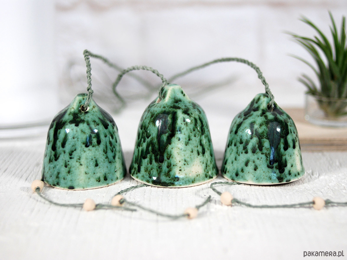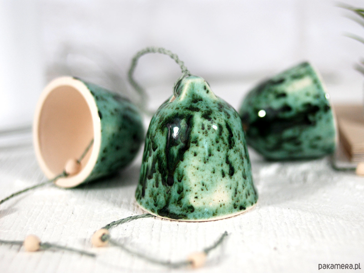 Ceramiczne dzwonki choinkowe - nakrapiana zieleń