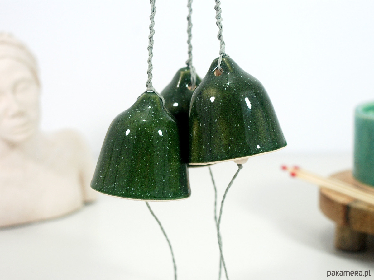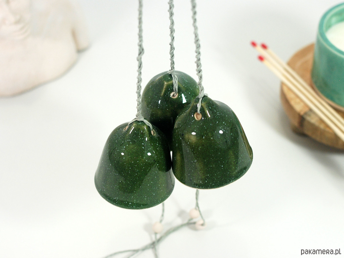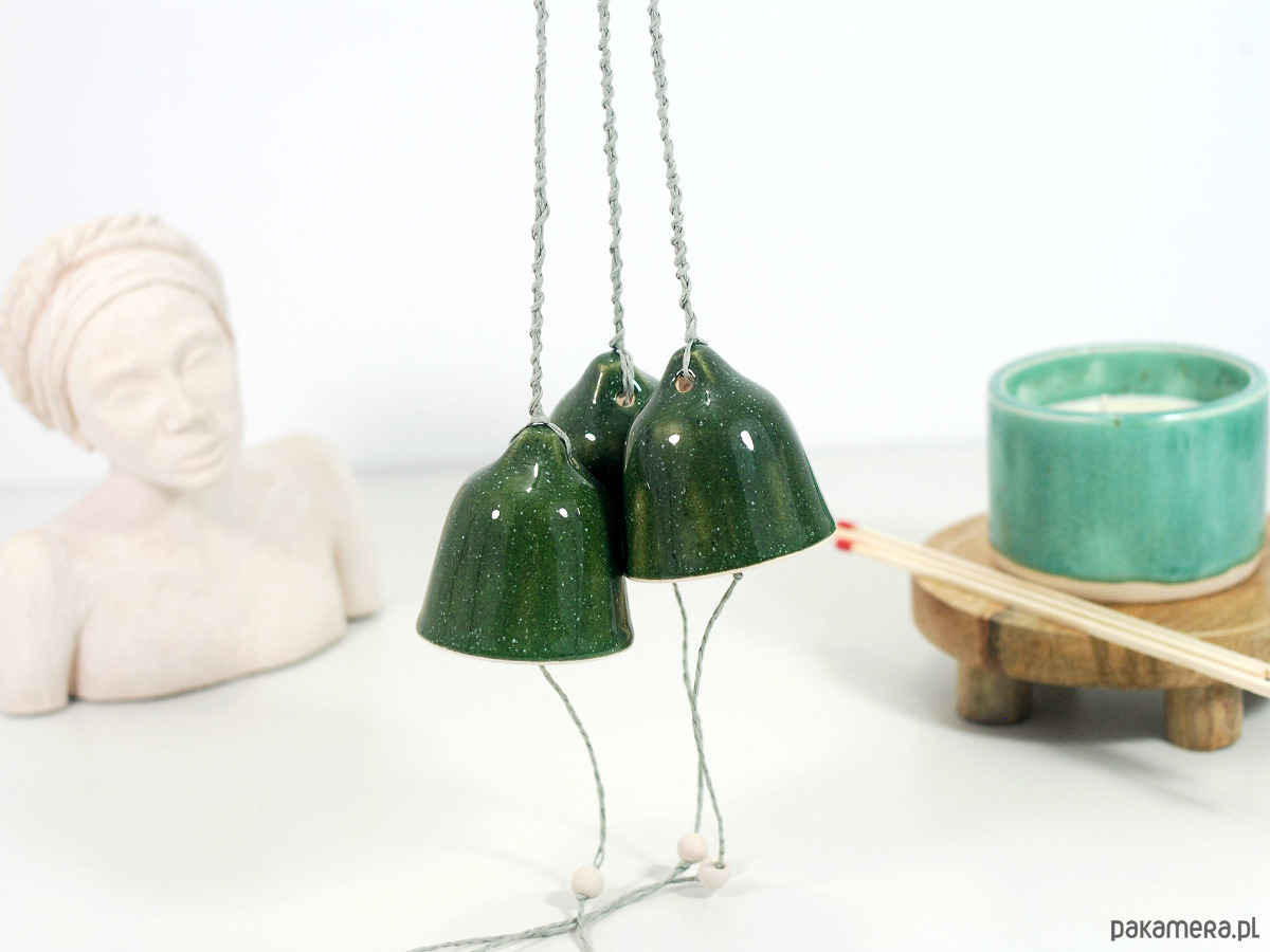 Zestaw zawiera 3 ręcznie robione i malowane, ceramiczne dzwonki.