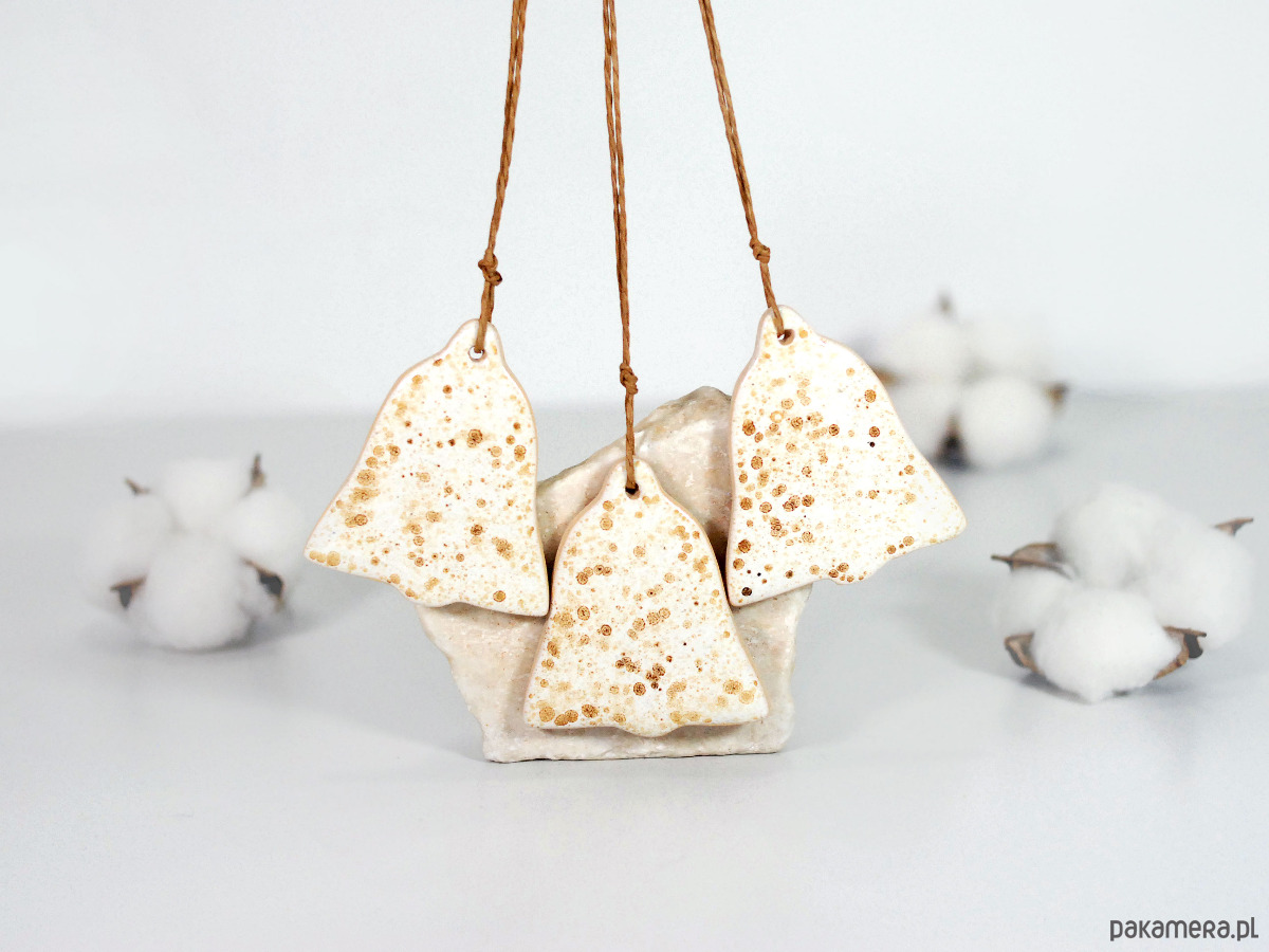 Ceramiczne dzwonki zestaw 3 ozdób choinkowych