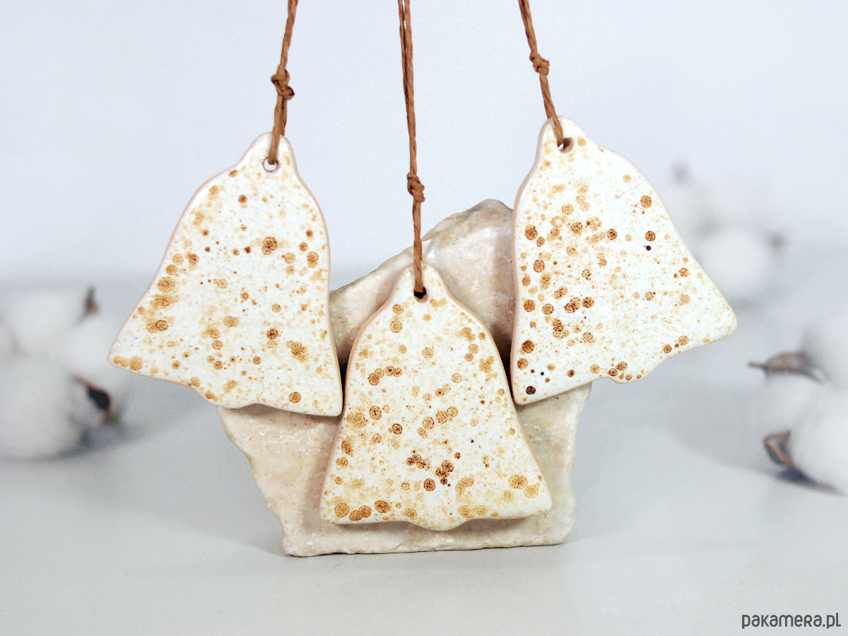 Ceramiczne dzwonki zestaw 3 ozdób choinkowych