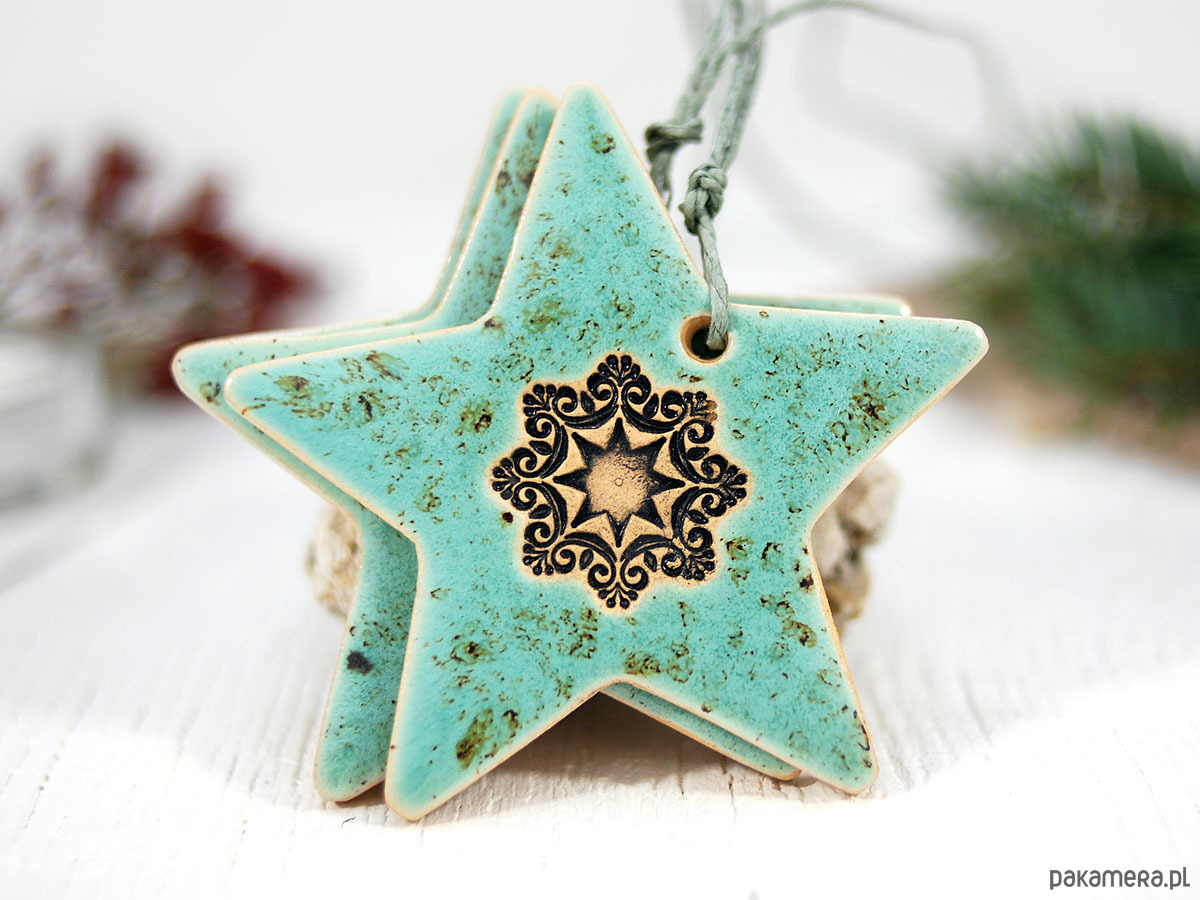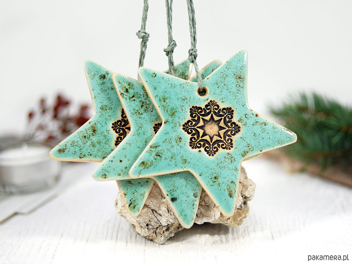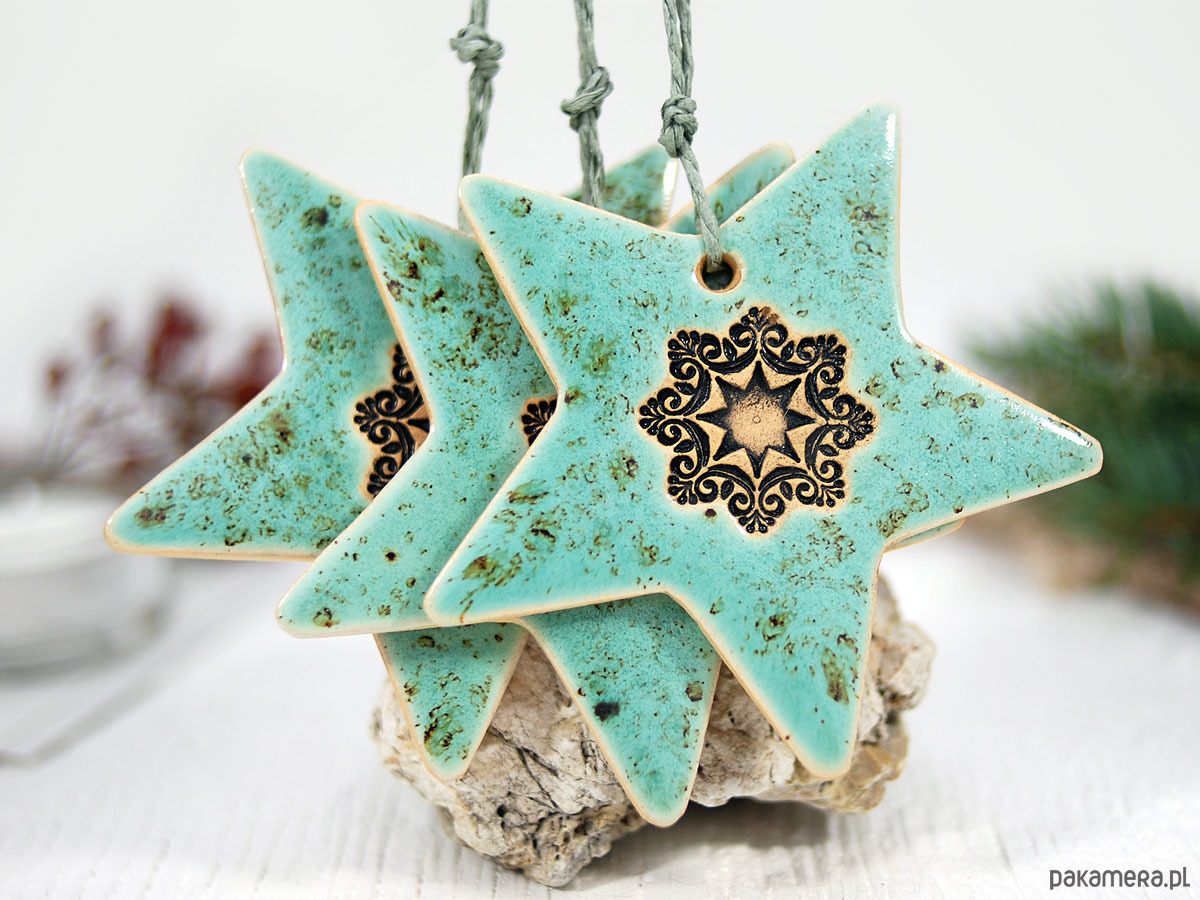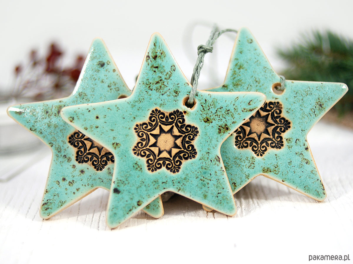 Zestaw zawiera 3 ręcznie robione i malowane ceramiczne gwiazdki.
