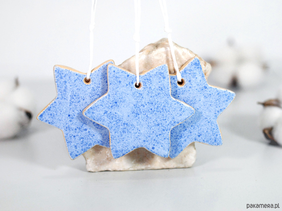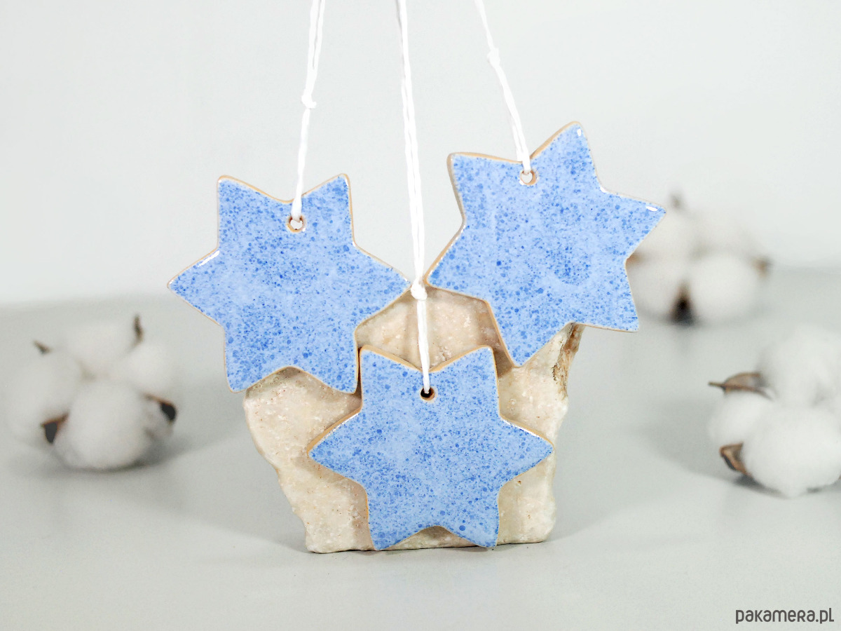 Zestaw zawiera 3 ręcznie robione i malowane ceramiczne gwiazdki.