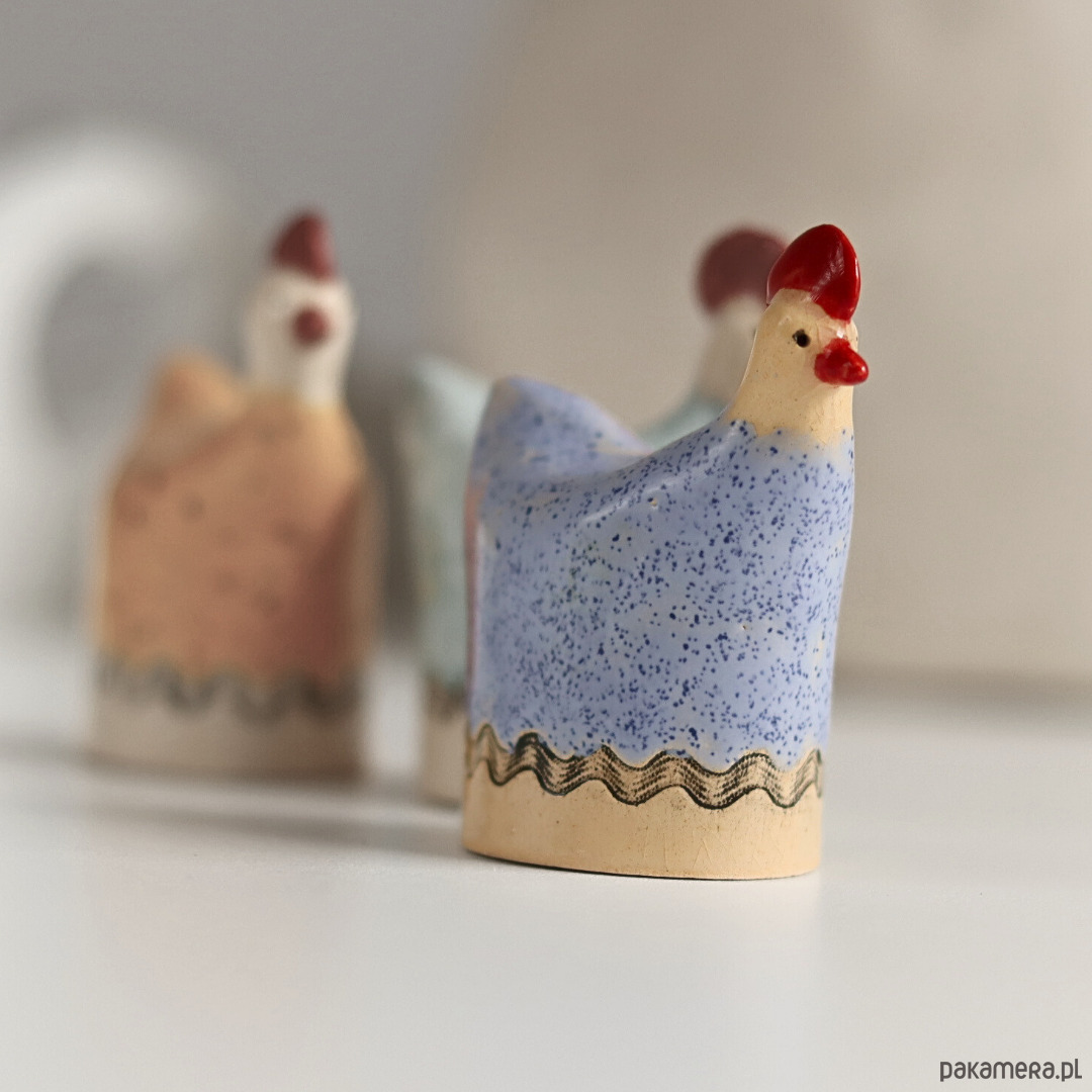 Ręcznie lepiona kurki wielkanocne. Wykonana z jasnej gliny, lekkie, szkliwione.
