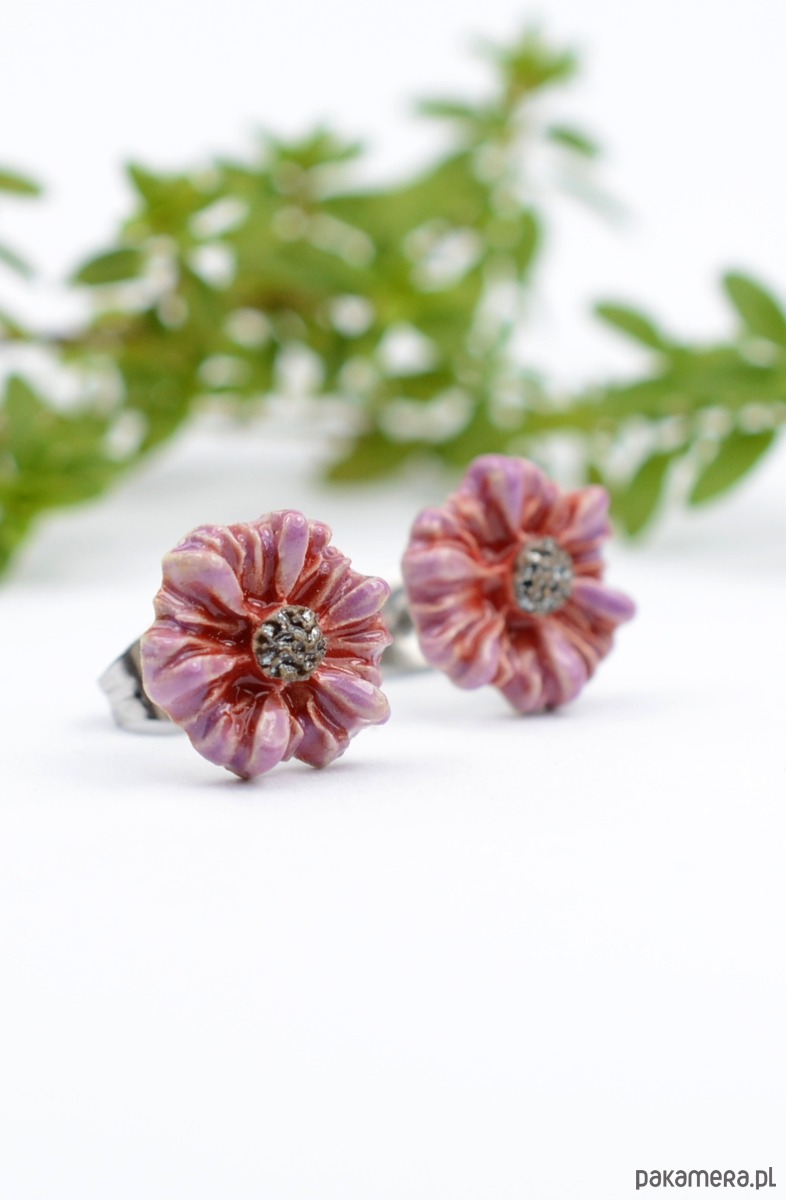 Ceramiczne kwiaty- kolczyki sztyfty 3d