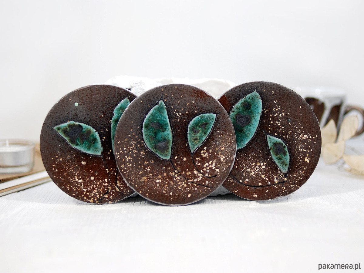 Ceramiczne podkładki na stół z turkusowym liściem