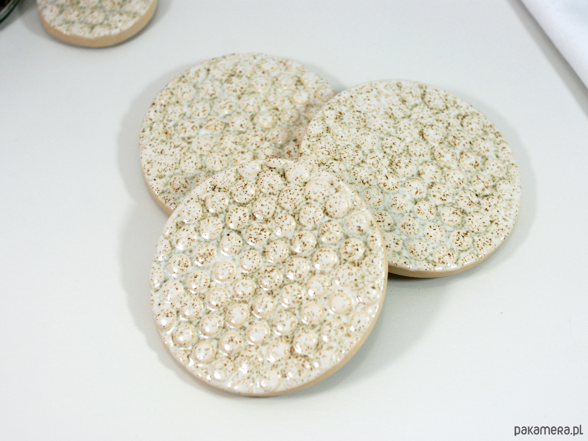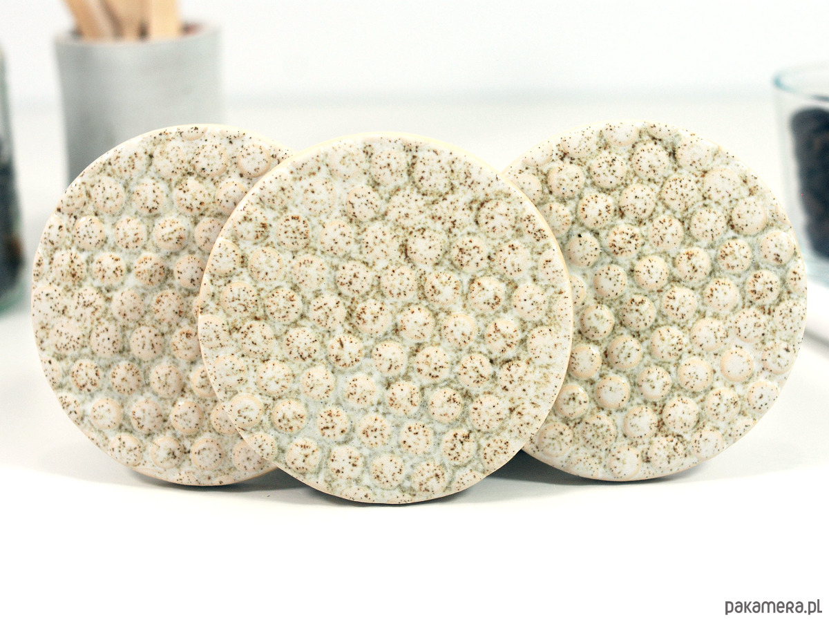 3 ceramiczne podkładki pod napoje w stylu skandynawskim. Podkładki to doskonały dodatek na każdy stół do kuchni czy salonu. Możesz ich używać jako podkładki pod kubki, filiżanki, świeczki, łyżeczki czy też serwować na nich małe przekąski. Ceramiczne podkładki to również fajny i funkcjonalny prezent na urodziny, wizytę u znajomych, parapetówkę i wiele innych okazji... nie tylko dla miłośników kawy i herbaty :).