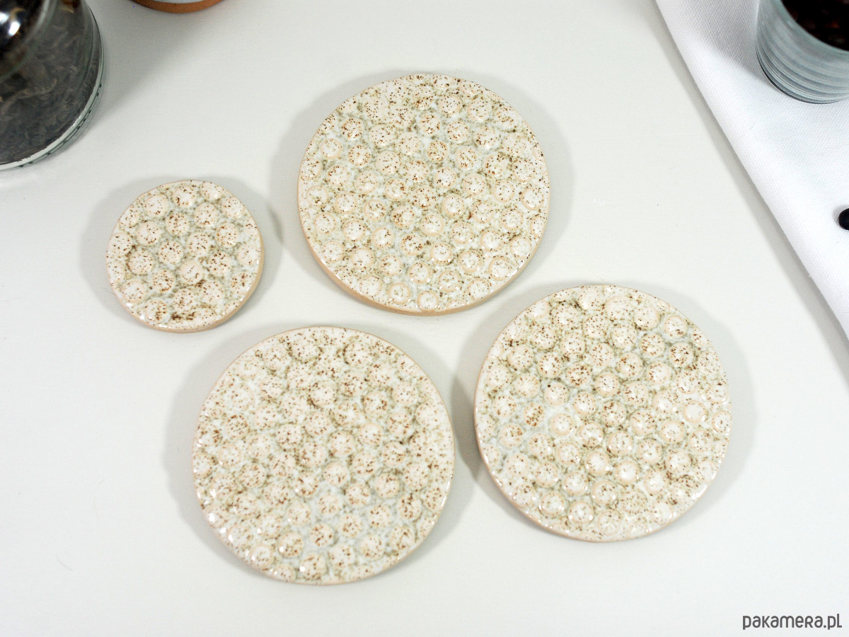Ceramiczne podkładki + podstawka na świeczkę - bąbelki