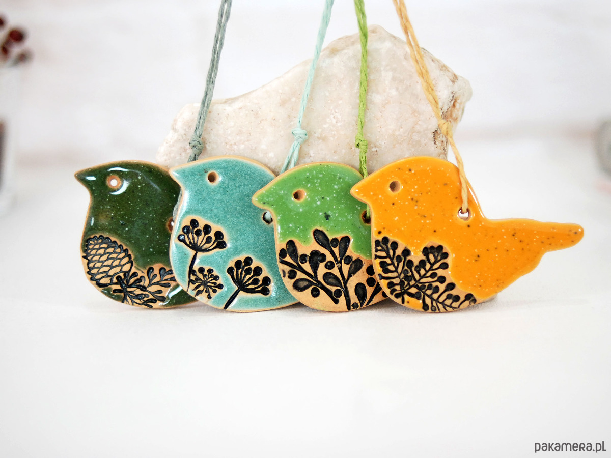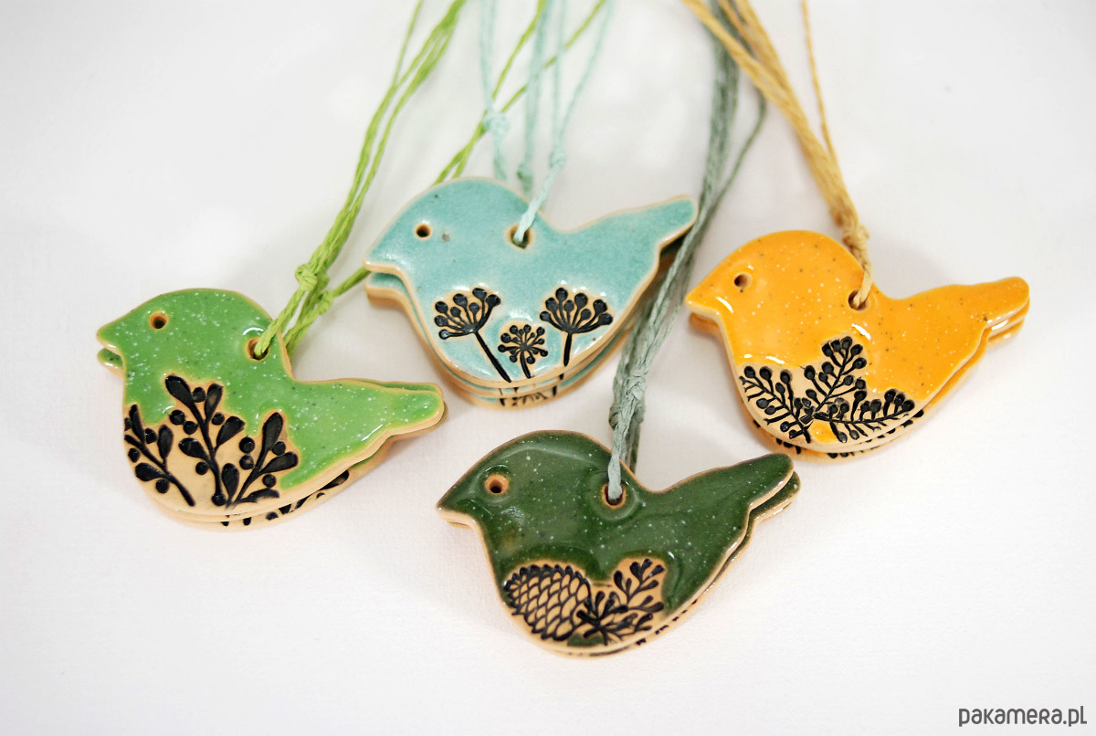Ceramiczne ptaszki wiszące - dekoracja wielkanocna