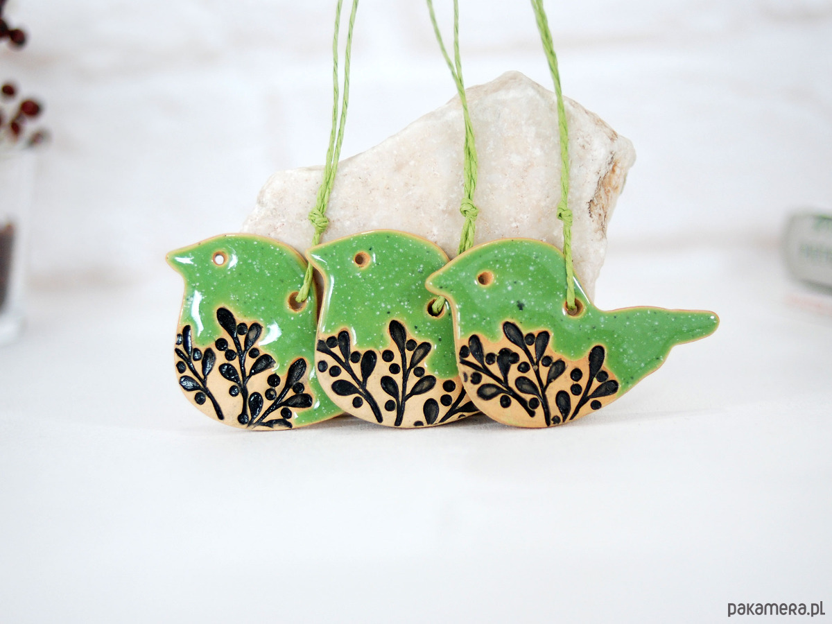 Ceramiczne ptaszki z motywem roślinnym