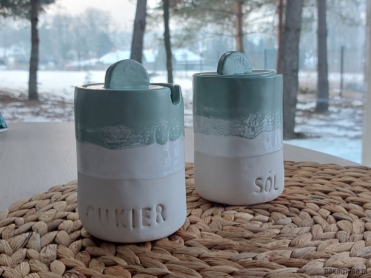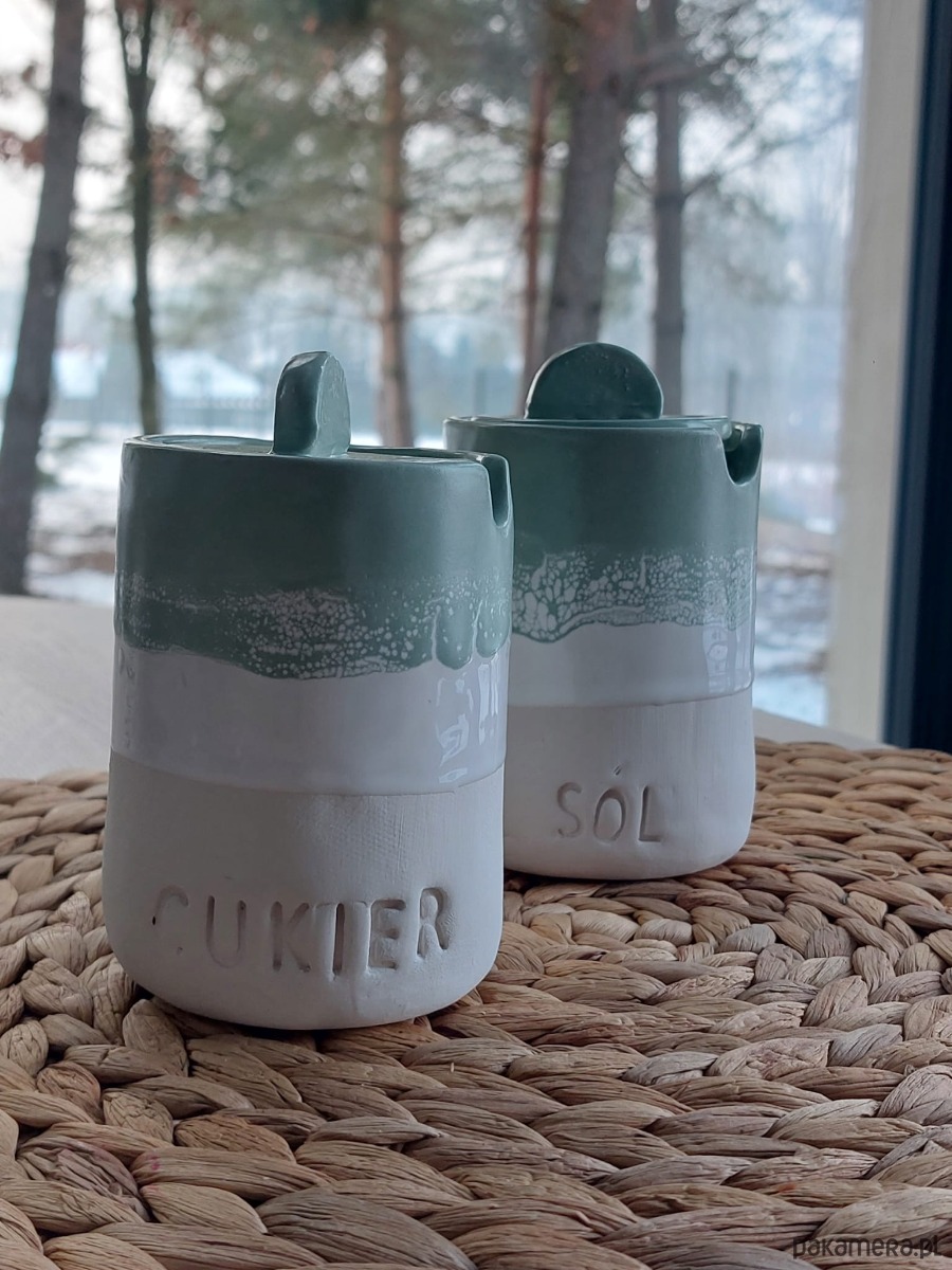 Ceramiczne ręcznie robione pojemniki na sól i cukier handmade