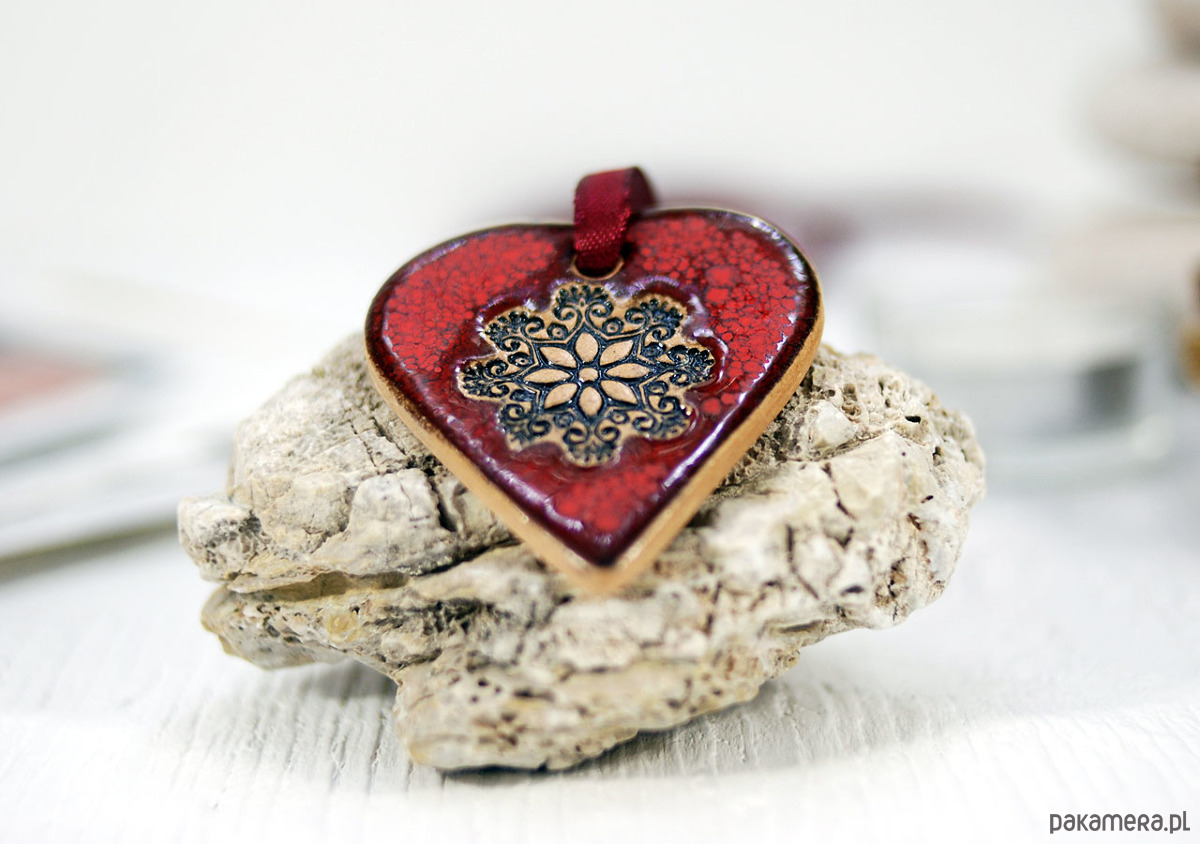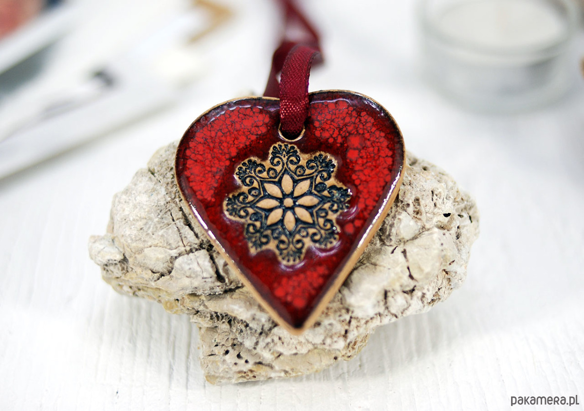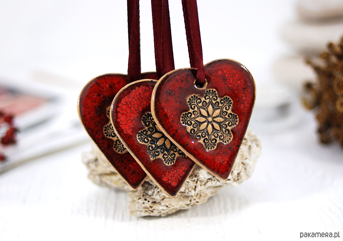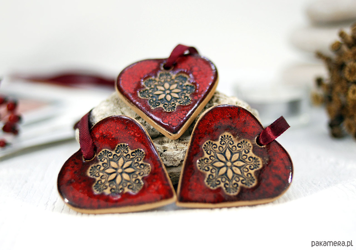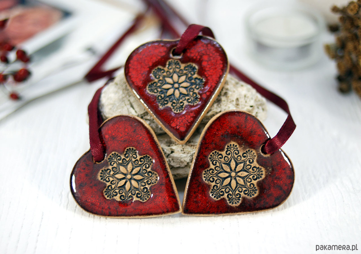 Ceramiczne serca z mandalą - ozdoby choinkowe