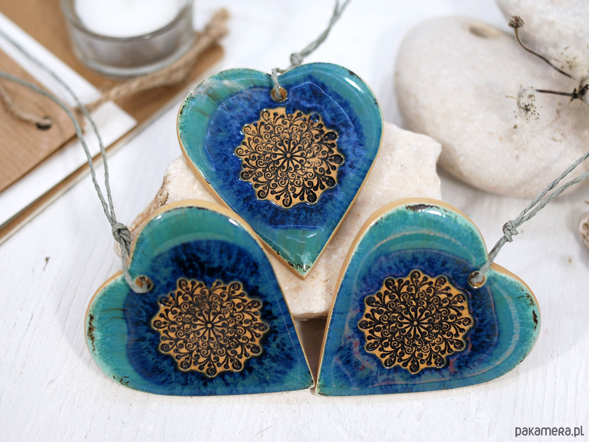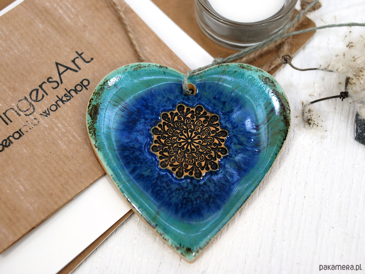 Ceramiczne serce laguna - wisząca ozdoba ceramiczna