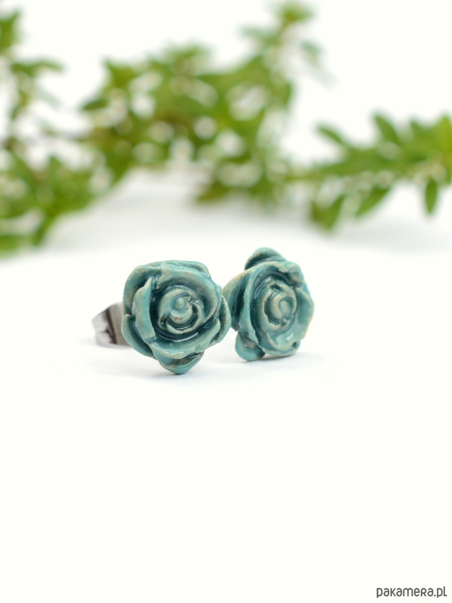 Ceramiczne, turkusowe róże- kolczyki sztyfty 3d