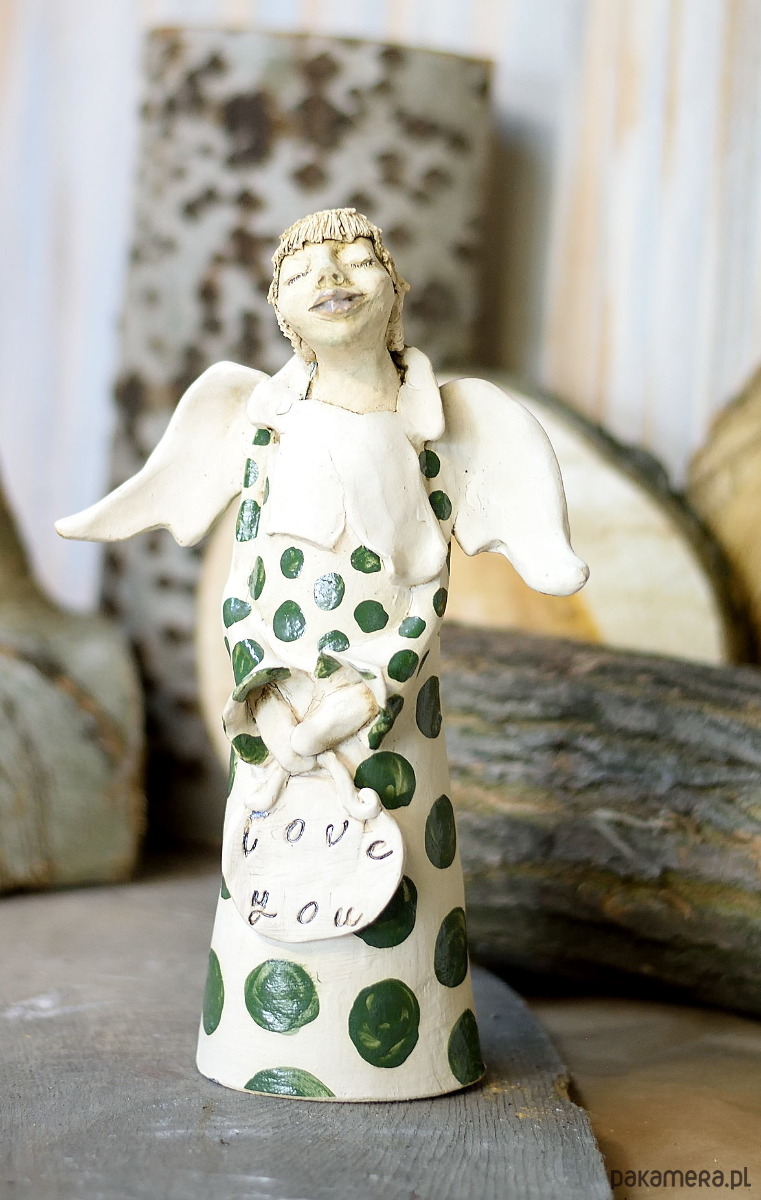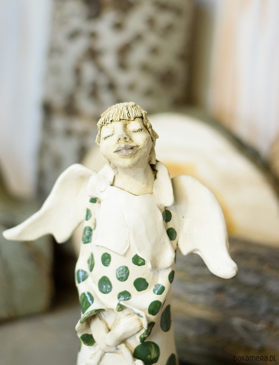 Każdy detal tego anioła został wykonany ręcznie, co dodaje mu wyjątkowego charakteru i autentyczności. To ręcznie robiona ceramika, która przynosi do Twojego domu nutkę sztuki i elegancji.