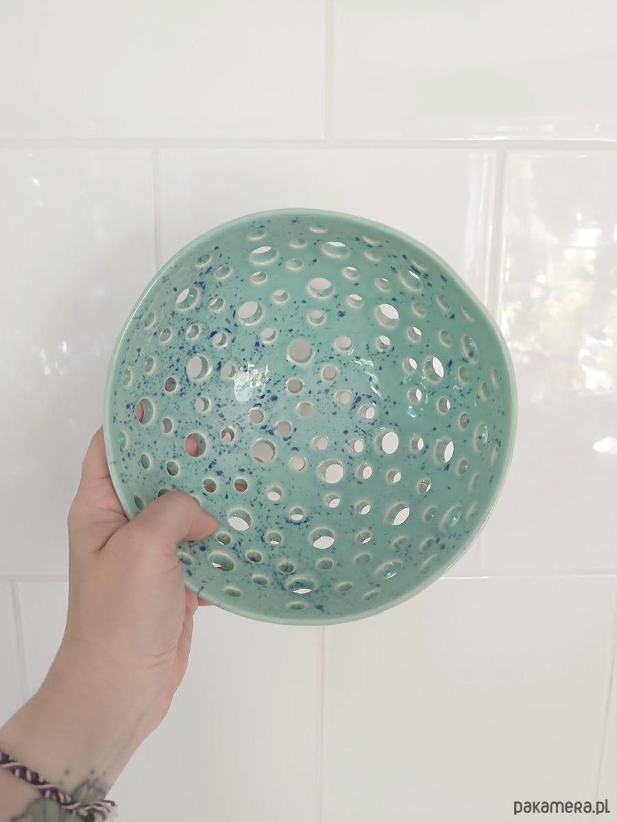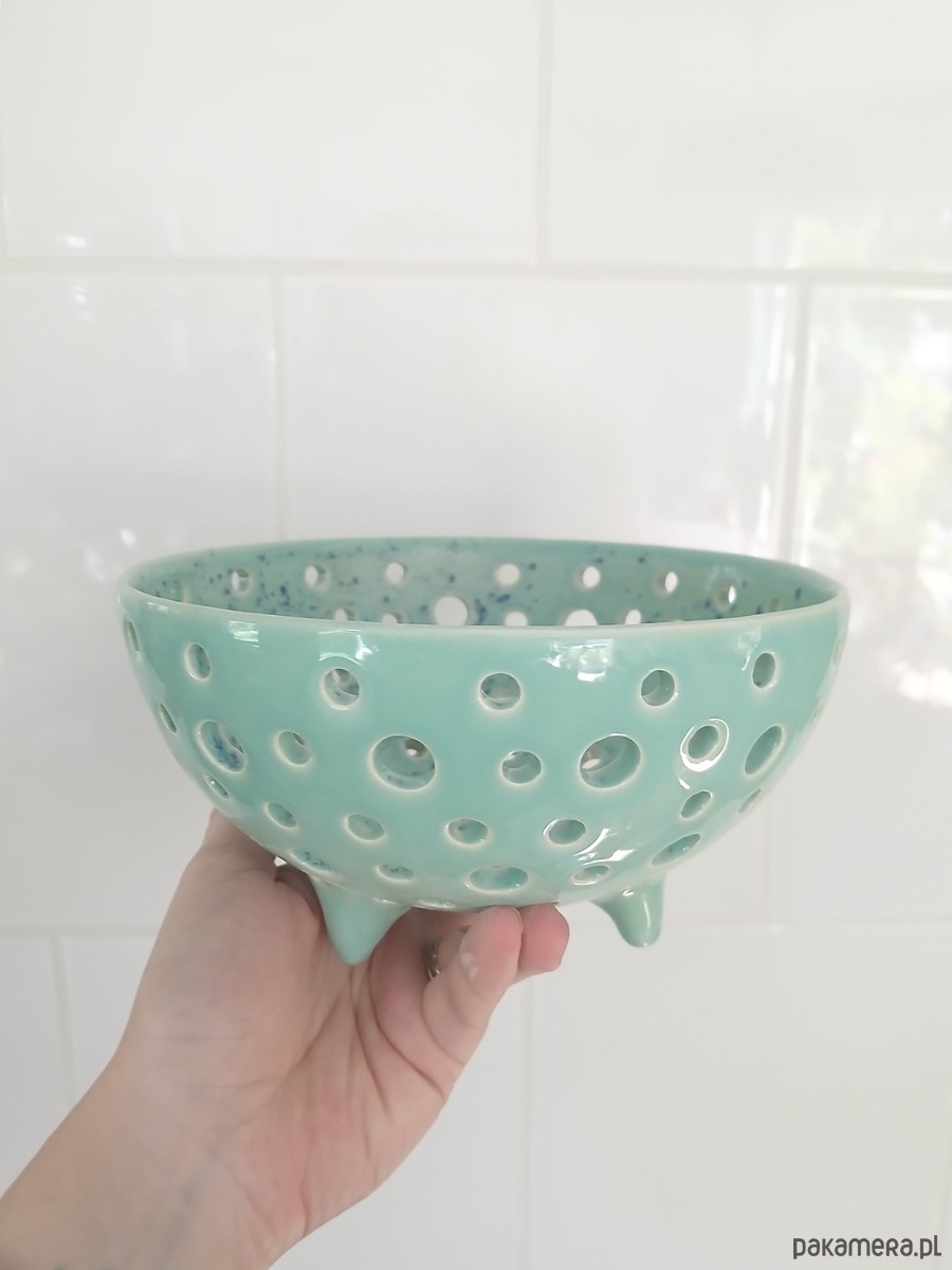 Ceramiczny durszlak na owoce miętowy
