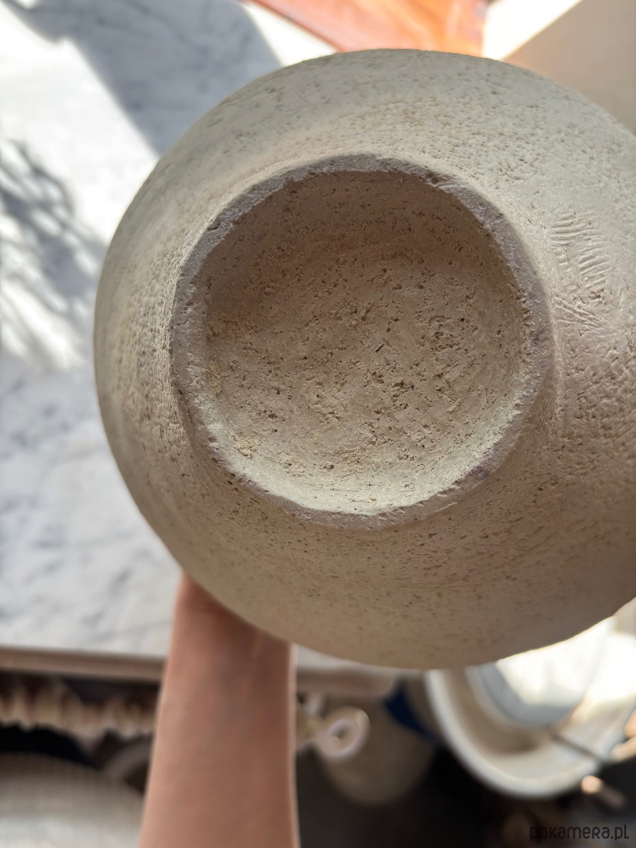 Spód został starannie zeszlifowany, dzięki czemu wazon jest bezpieczny dla powierzchni, na której stoi.