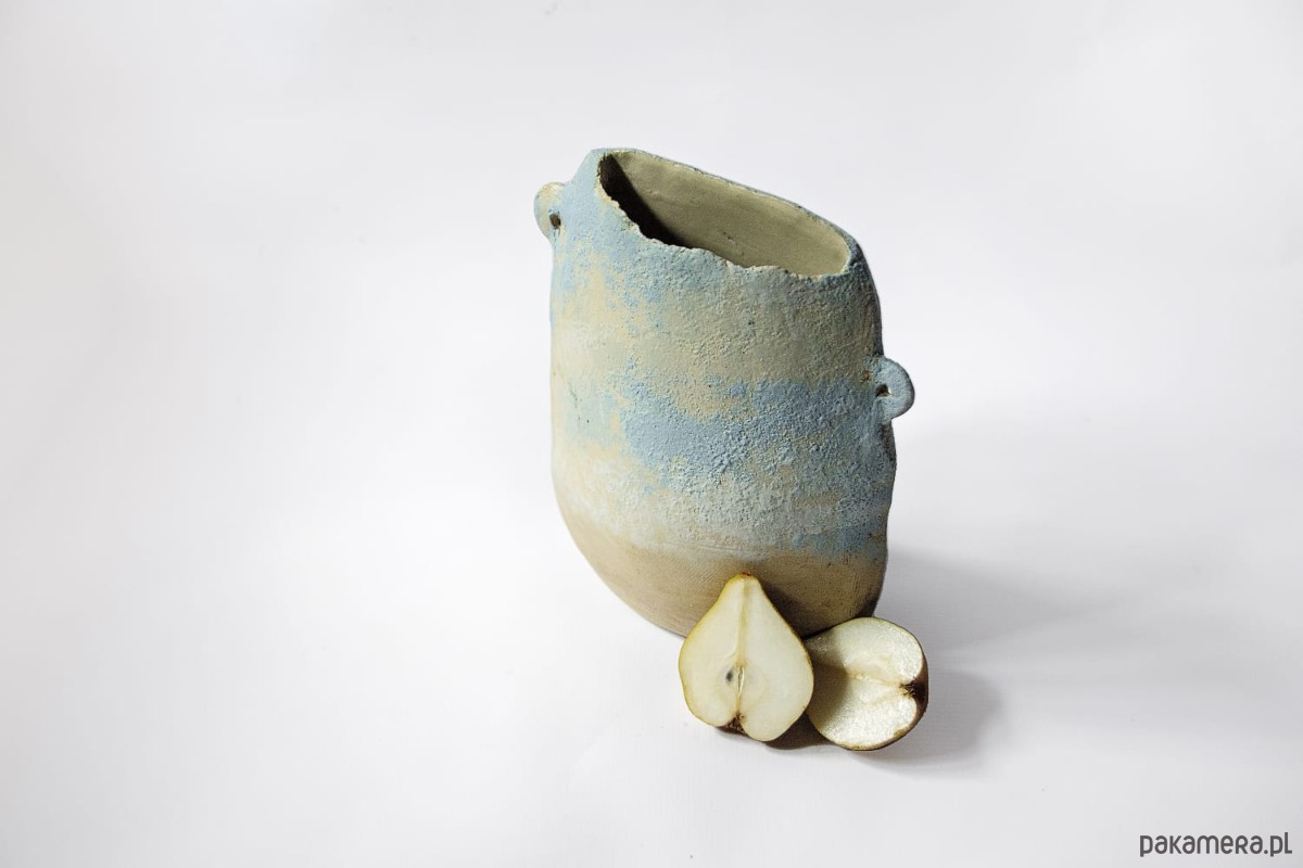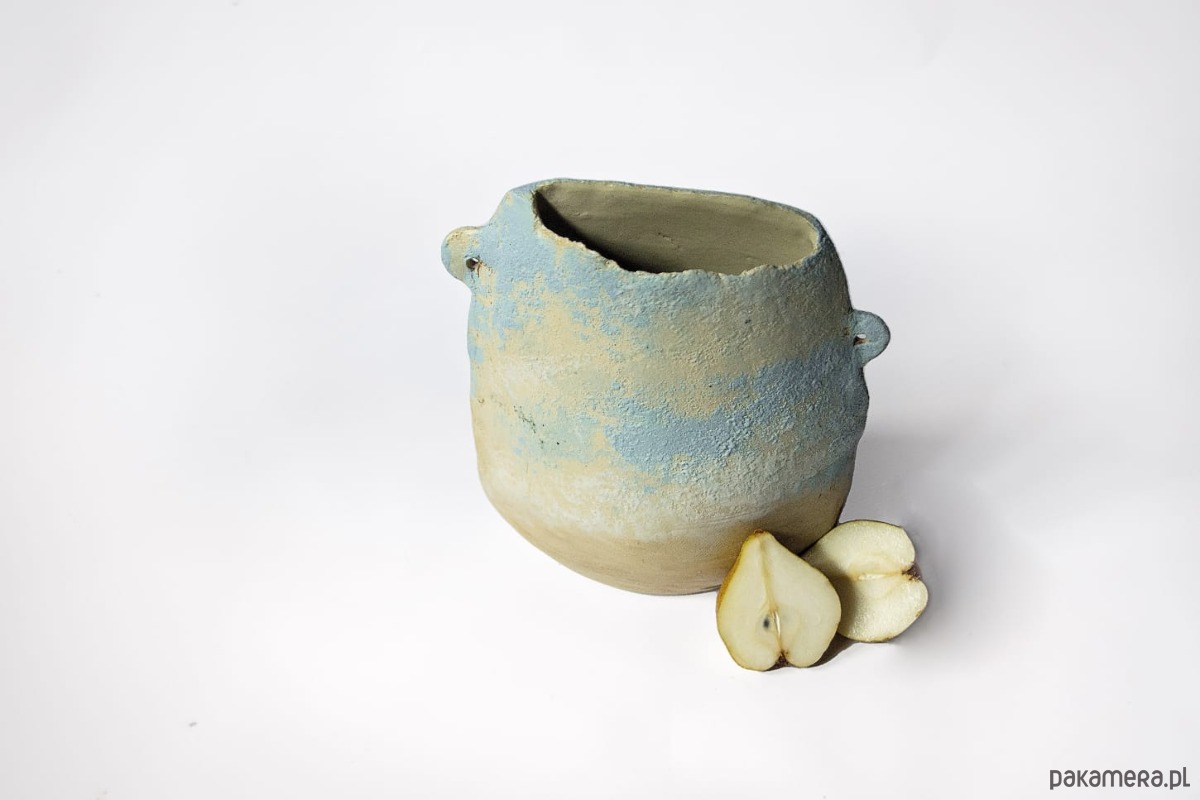 Ręcznie wykonany niebieskawy dzban na kwiaty