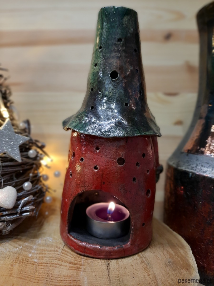 Wypalany w technice RAKU, dzięki czemu zyskał niepowtarzalny wygląd