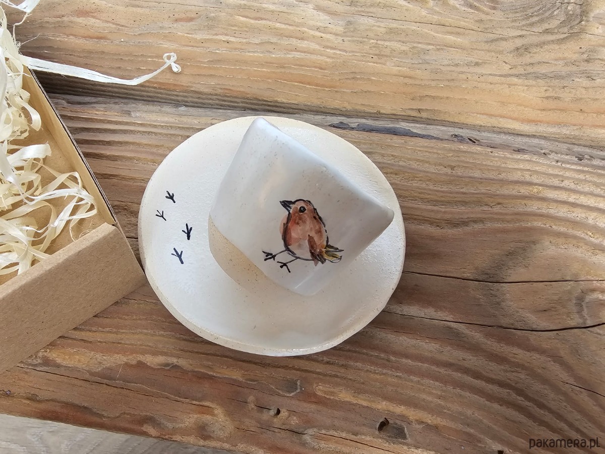 Ceramiczny ręcznie zdobiony kieliszek na jajko z talerzykiem