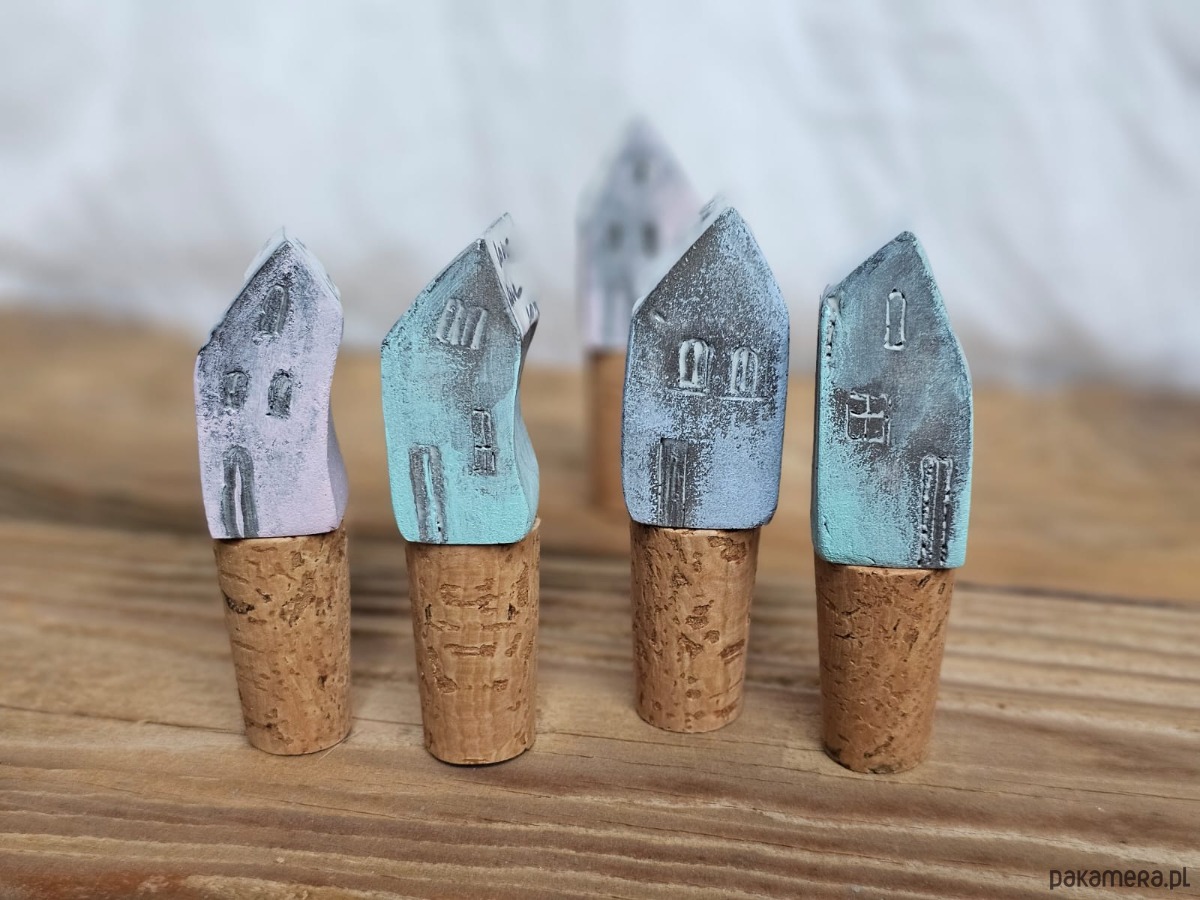Ozdobne korki do wina w ksztacie domku z napisem Love