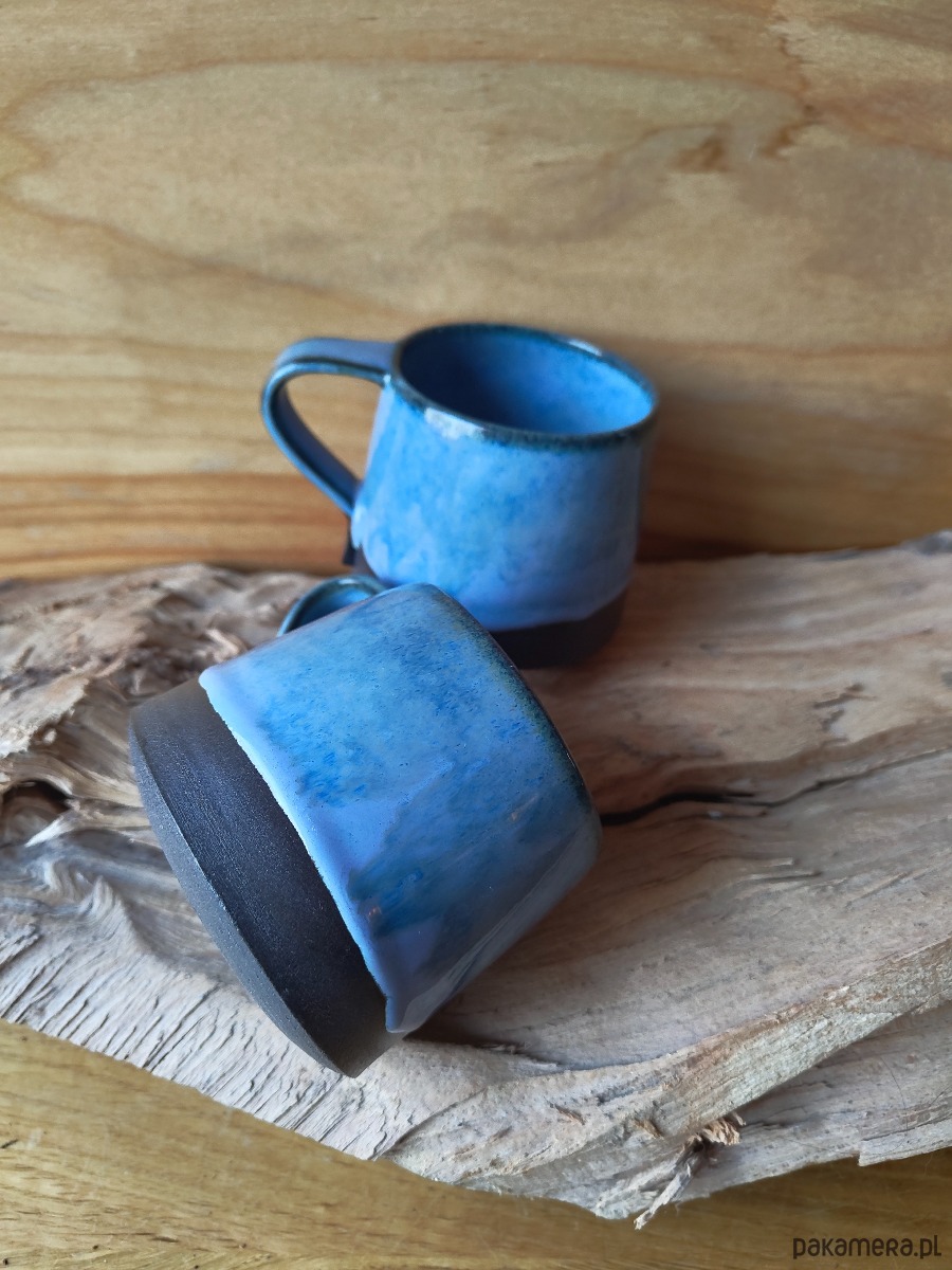 wykonany ręcznie, toczony na kole z czarnej gliny , szkliwiony mieszanką dwóch szkliw, co daje niepowtarzalny efekt ,