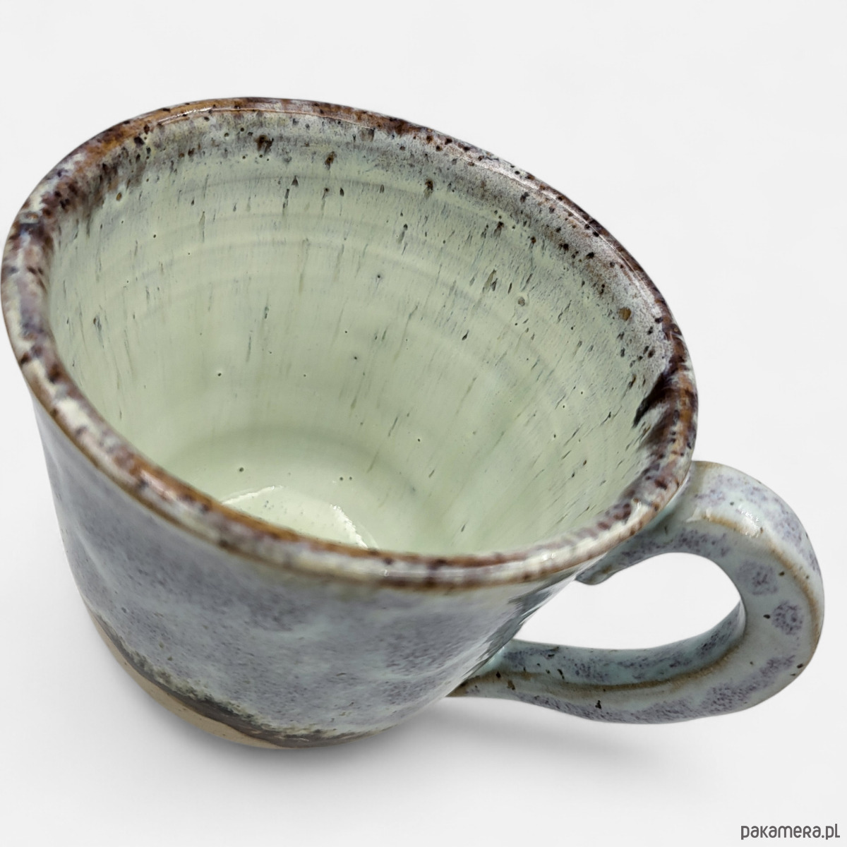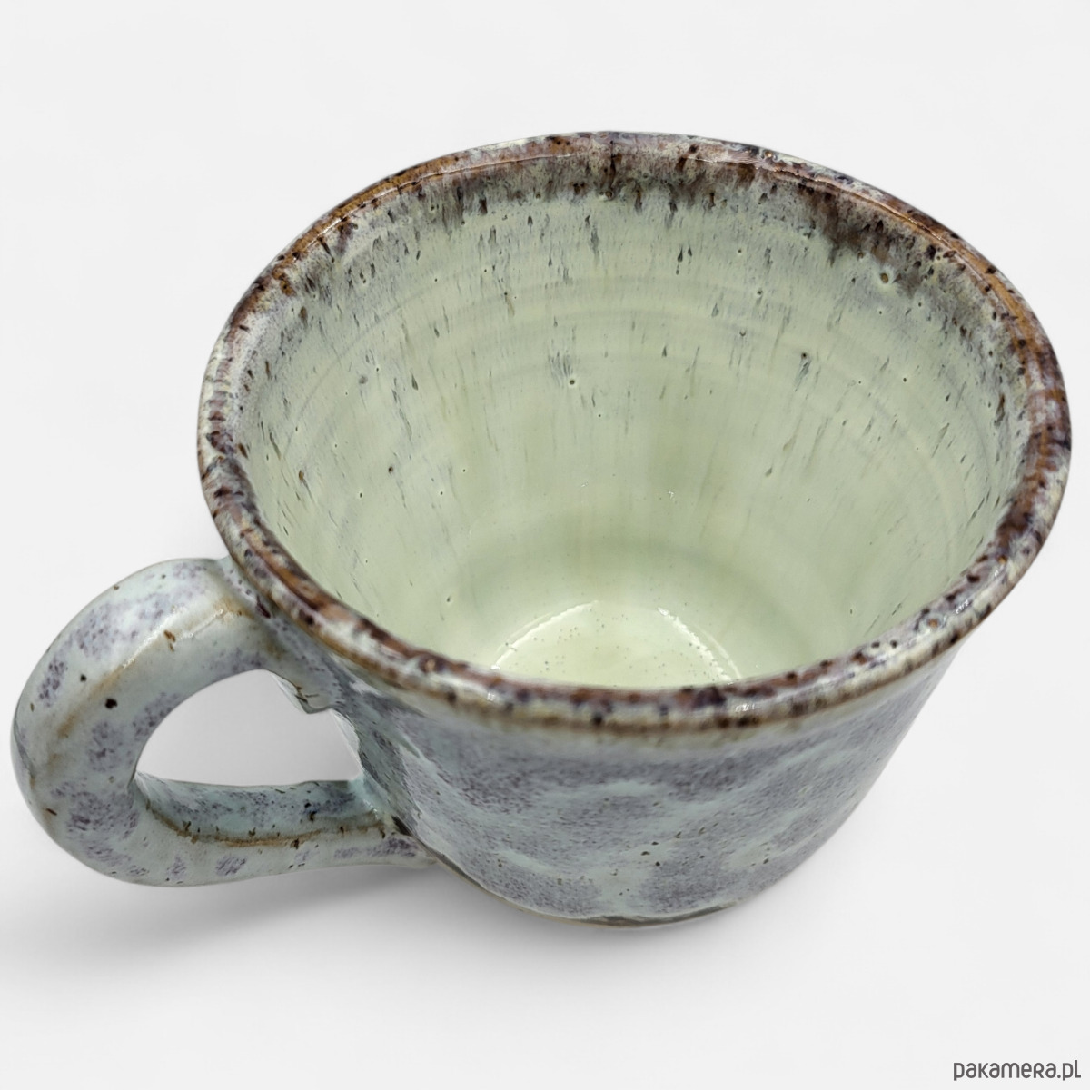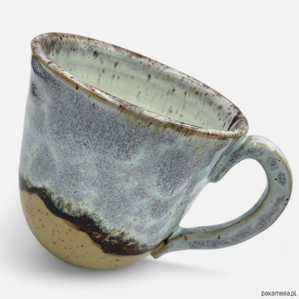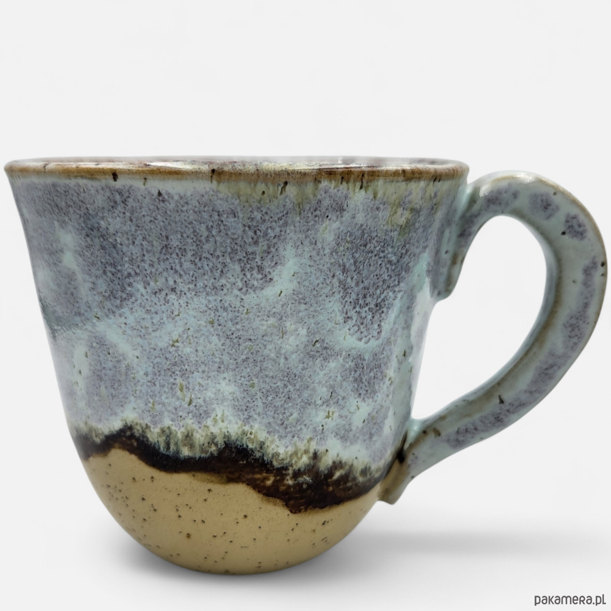 Toczony, ręcznie dekorowany ceramiczny kubek o pojemności 300 ml i wymiarach: