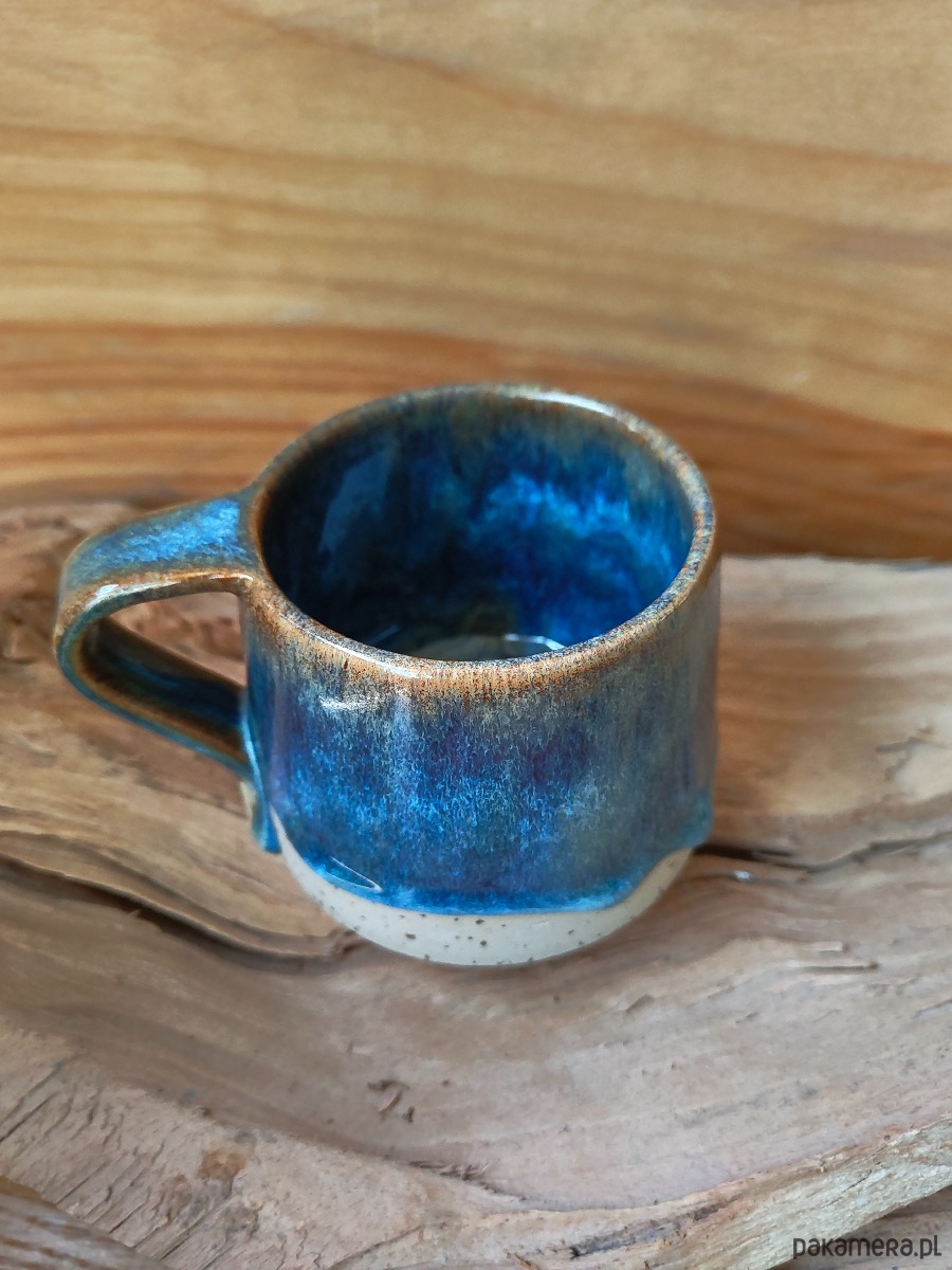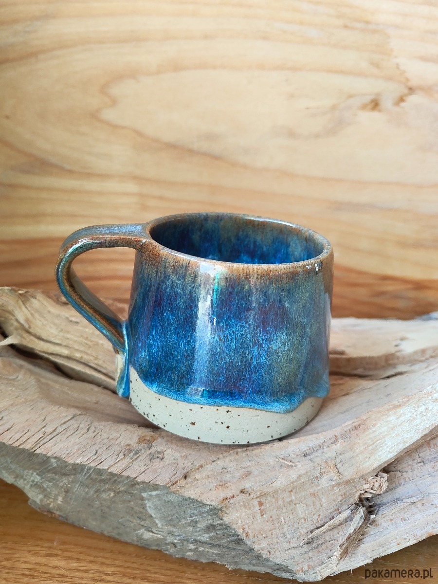 Ceramiczny kubek o pojemności 370 ml ,kubek wykonany ręcznie, toczony na kole z gliny z dodatkiem bazaltu co daje efekt piegów,szkliwiony mieszanką szkliw -niepowtarzalny efekt.