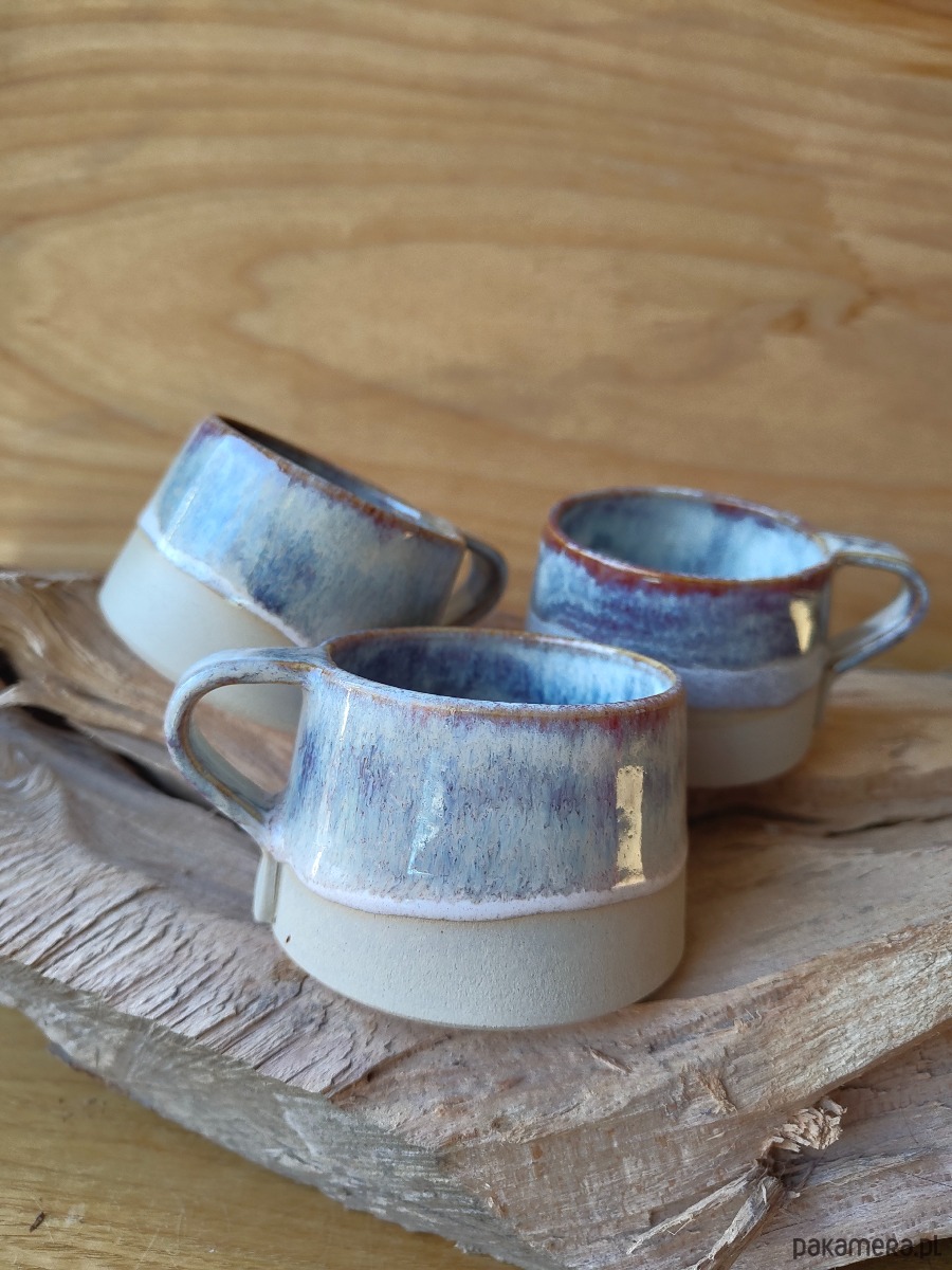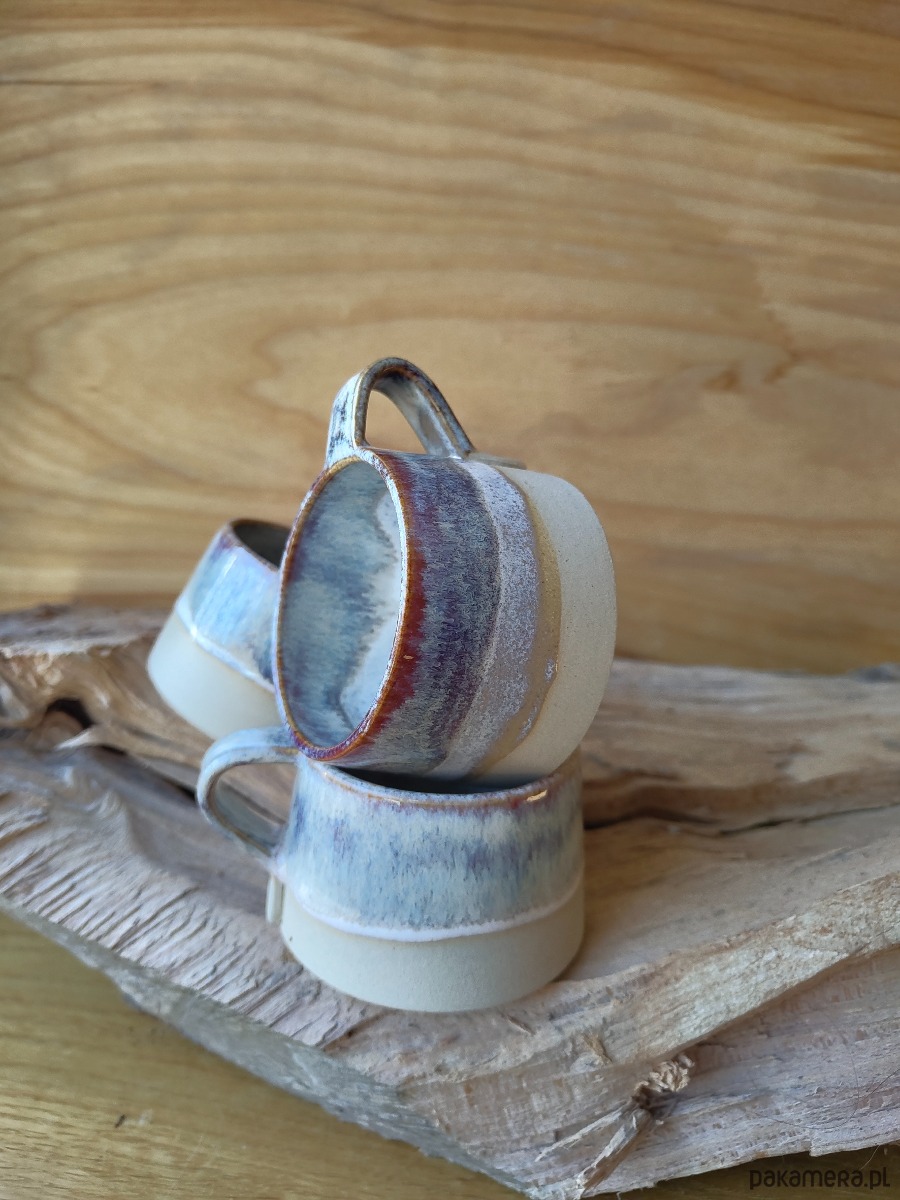 Wyjątkowy kubek ceramiczny, ręcznie lepiony o pojemności 200 ml . Wykonany z jasnej gliny z dodatkiem bazaltu co daje efekt "ciemnych piegów", szkliwiony mieszanką szkliw przeznaczonych do kontaktu z żywnością.