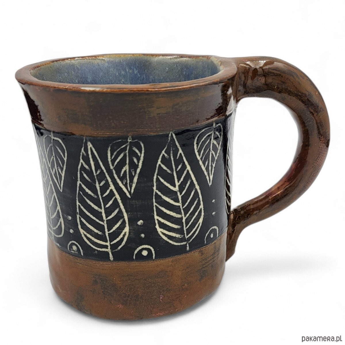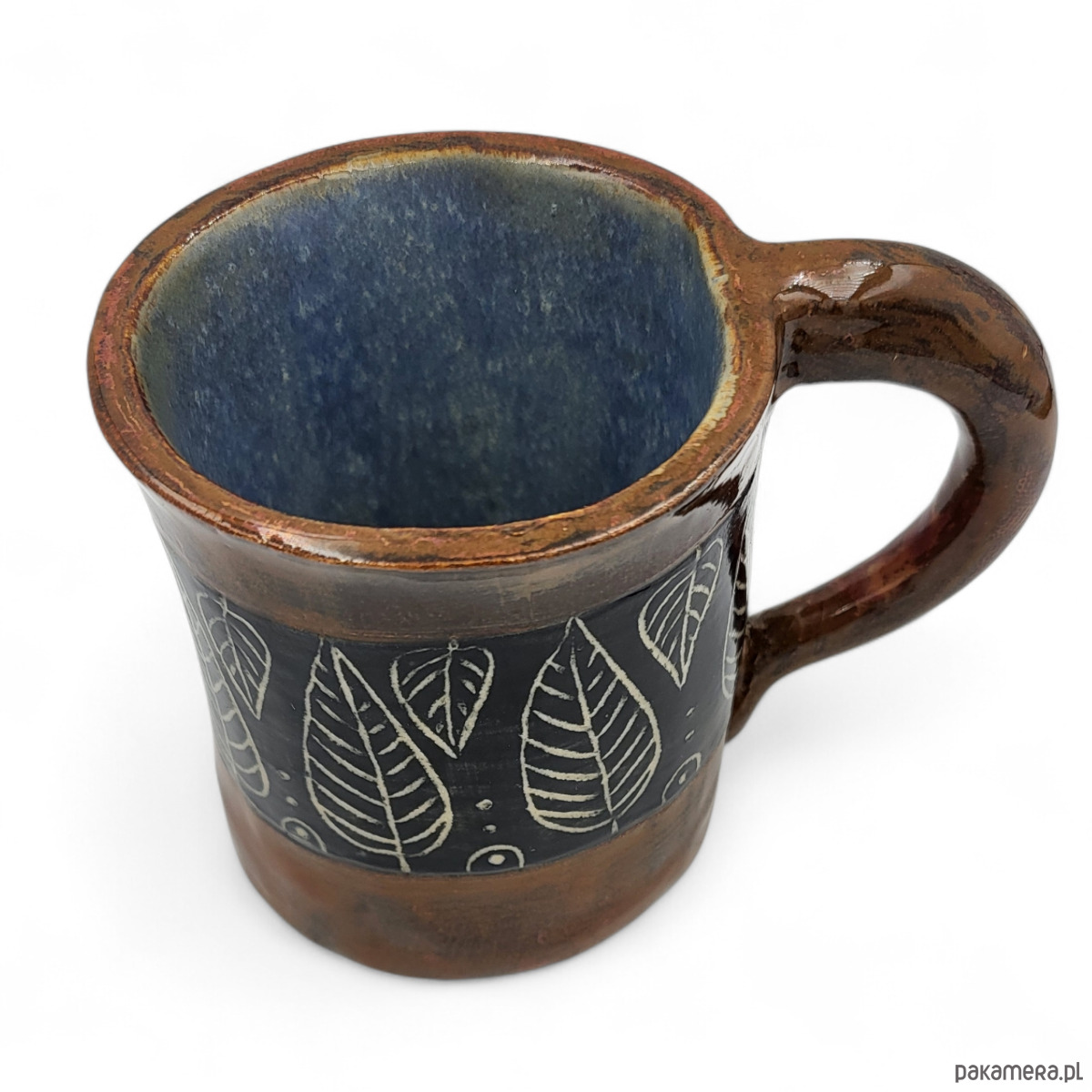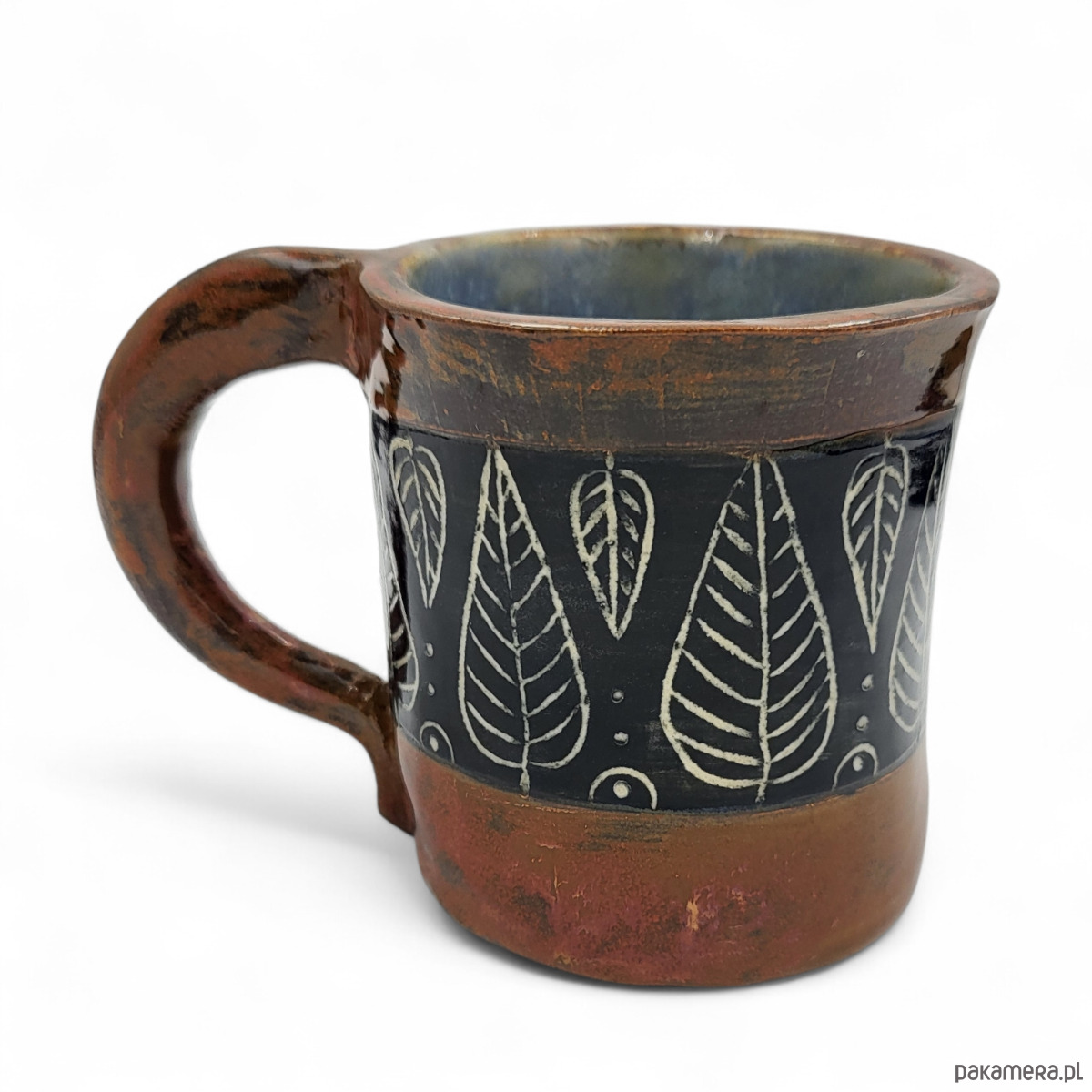 Ręcznie formowany i dekorowany ceramiczny kubek o pojemności 250 ml i wymiarach: