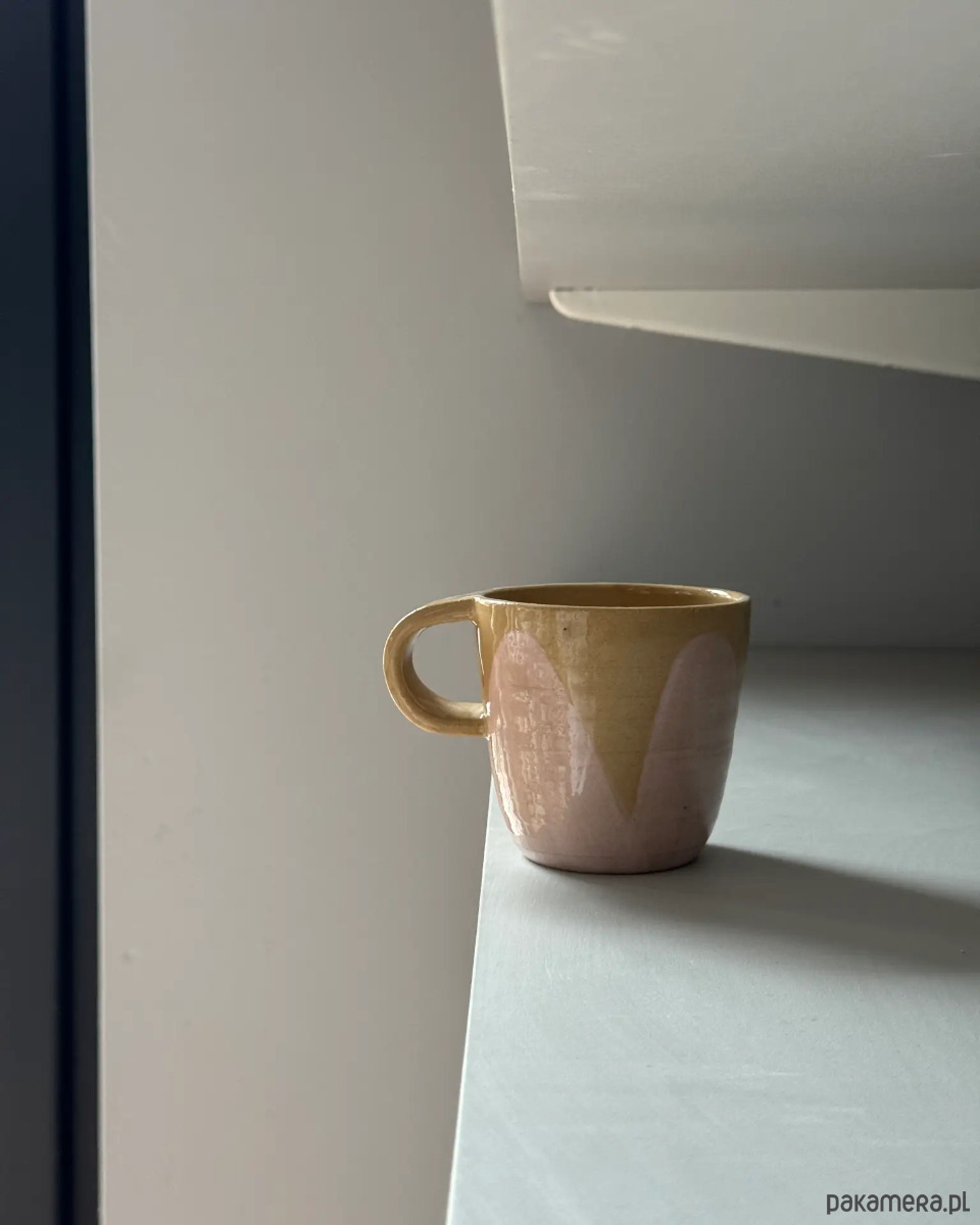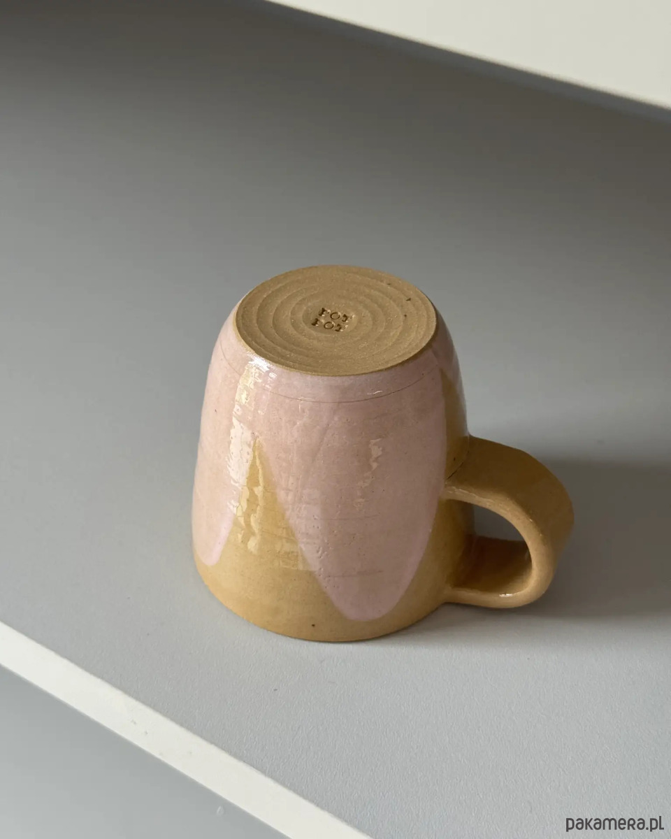 Każdy kubek powstaje ręcznie w pracowni Pot Pot Shop w Bielsku-Białej. Formowany z jasnej gliny i pokryty autorskim szkliwem o delikatnym różanym odcieniu z naturalnymi nieregularnościami, które nadają mu wyjątkowy, vintage’owy charakter. To ceramika, która opowiada swoją historię w każdym detalu.