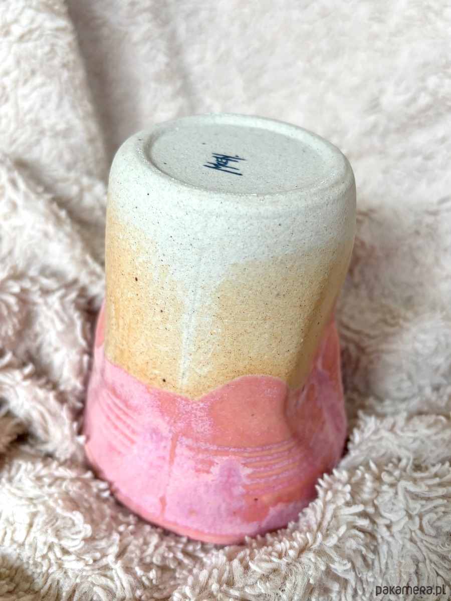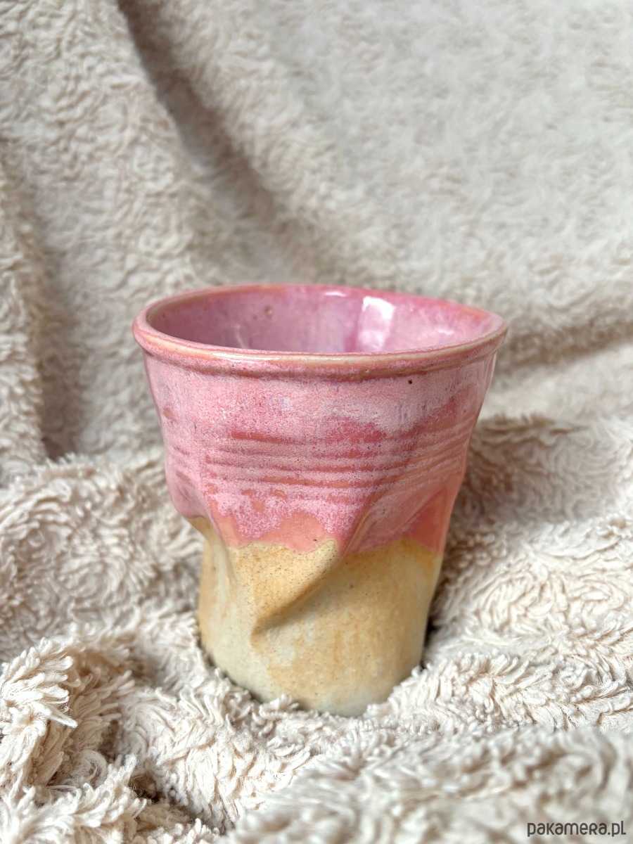 Ceramiczny kubek "Różyczka" to kubek-gniotek wpasowujący się na różne sposoby w trzymaną dłoń. Szkliwo w środku oraz wierzchu zawiera różne odcienie różu kojarzące się z drobnymi, różowymi różami na wielkich krzakach okalających ulice w ciepłych krajach. Kolor jest ciepły i błyszczący, idealny do porannej pobudki z kawą lub herbatą w ręku.