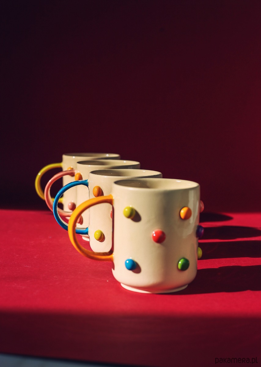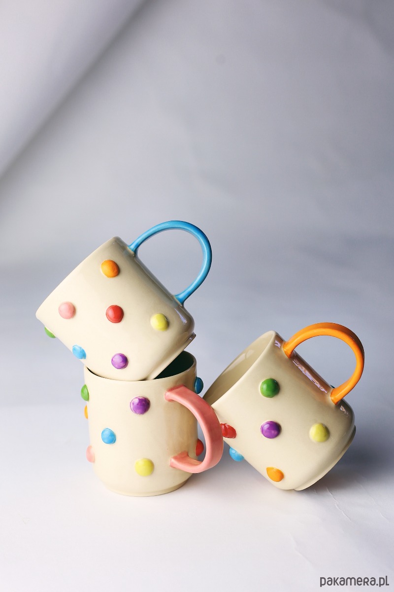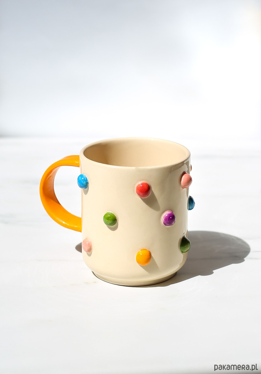 Kubek ceramiczny w kolorowe odstające bąble. Ręcznie malowany.