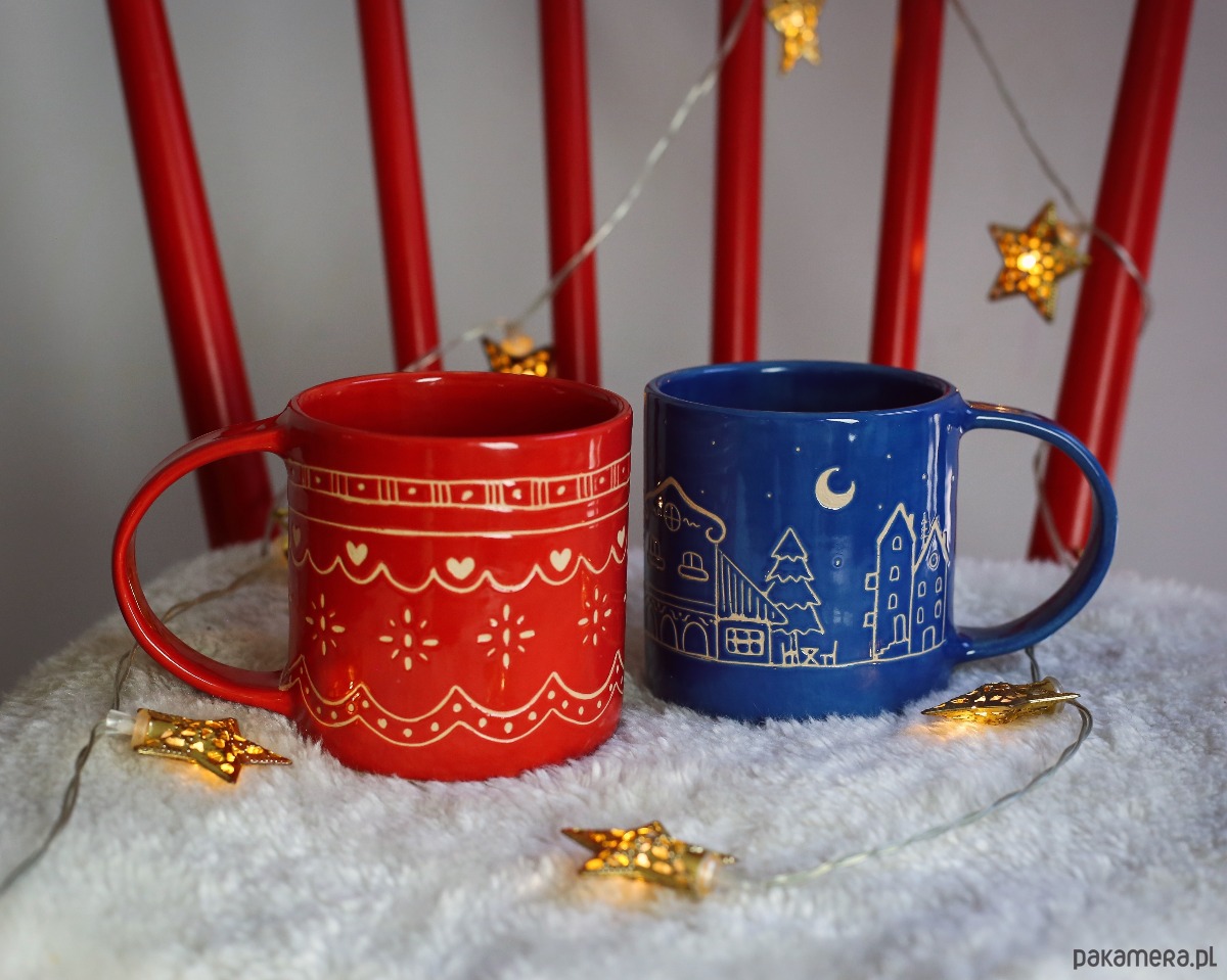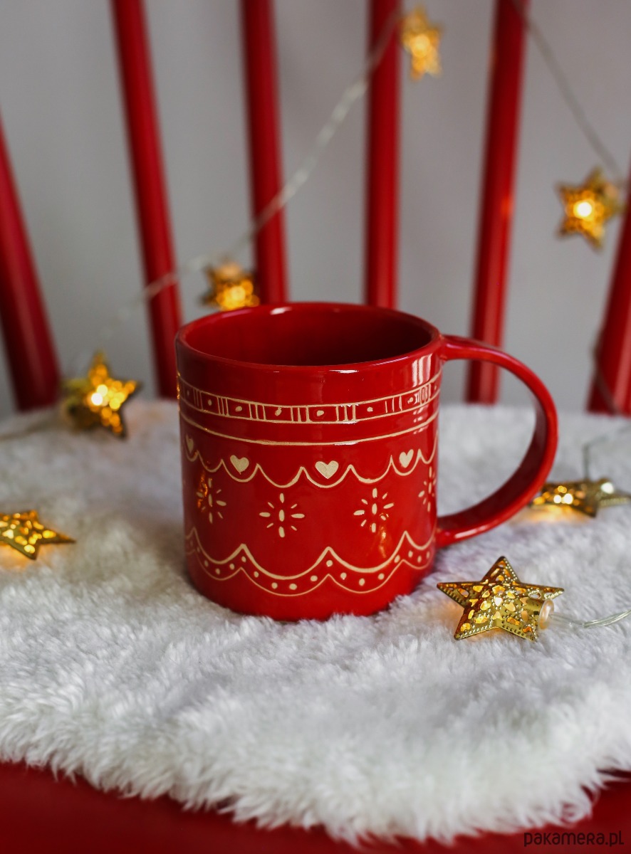 Kubek ceramiczny w odręcznie wyryte wzory.