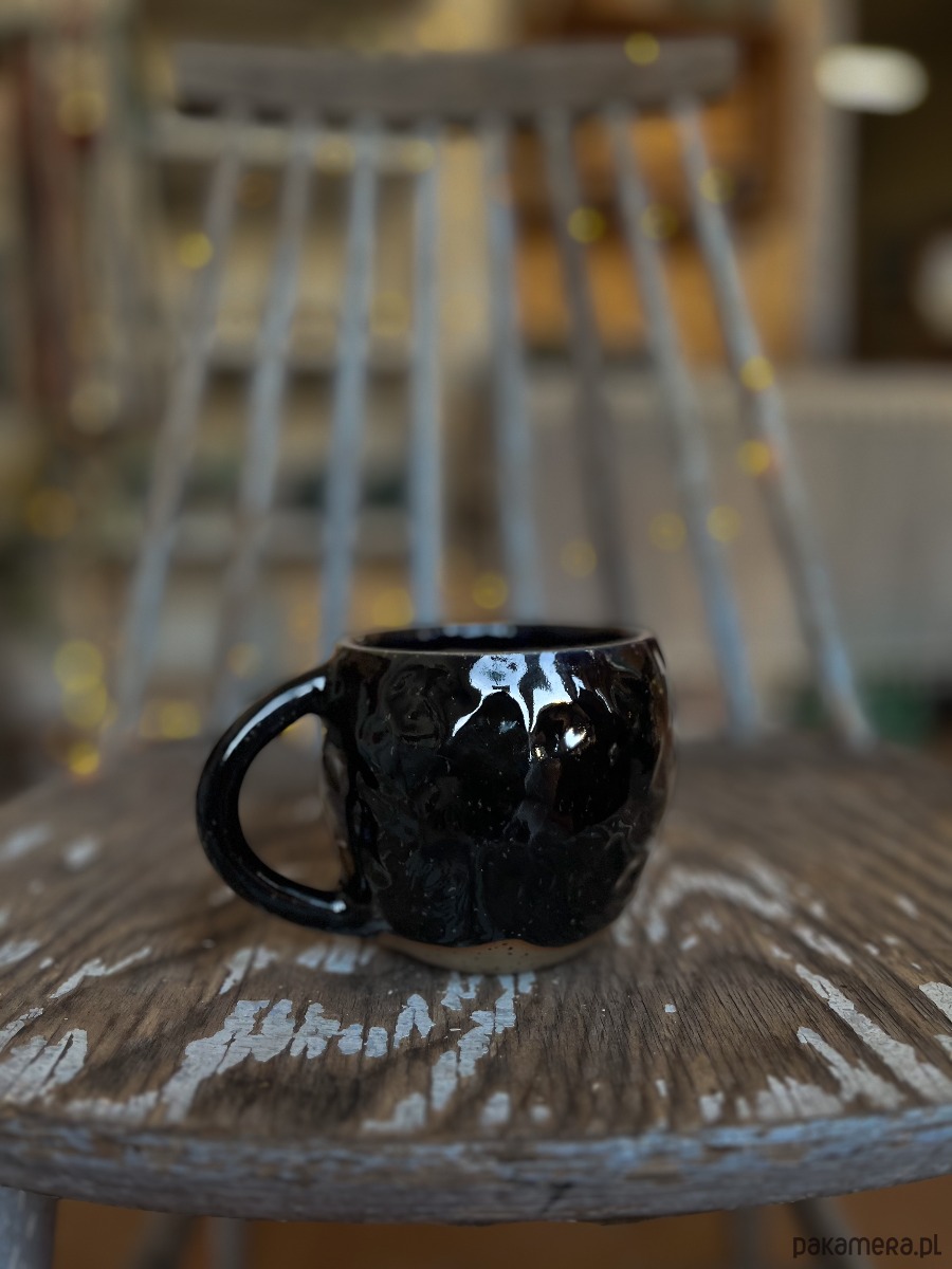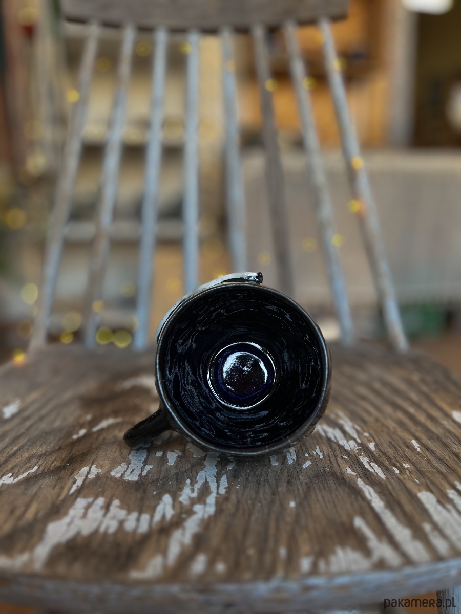 Glina w kropki pokryta jest czarnym szkliwem, dzięki czemu wygląda jak nocne niebo z gwiazdami.