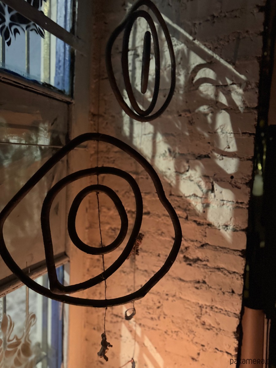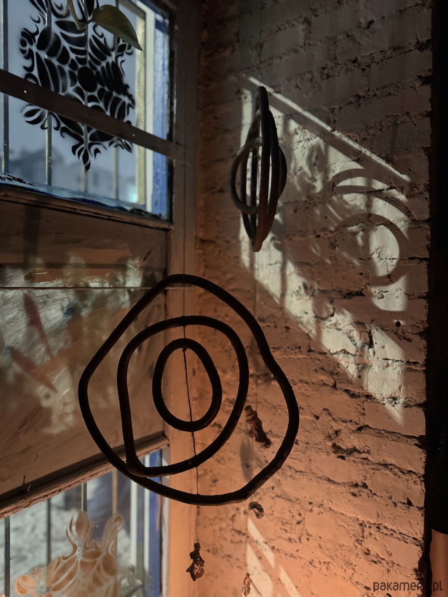W tym wzorze wykonałam dwa łapacze. Z szarej kamionki z kropeczkami. Łapacz składa się z ogkręgów plam, które kręca się wokół własnej osi. Ceramika z której wykonany jest łapacz ma ładny dźwięk, można na nim więc grać.