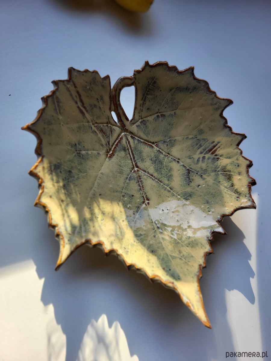 Ceramiczny listek na 3 małych nóżkach,dwustronnieszkliwiony