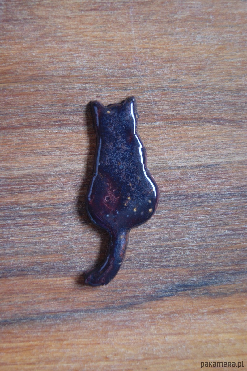 Uroczy ceramiczny magnes na lodówkę - siedzący tyłem kotek.