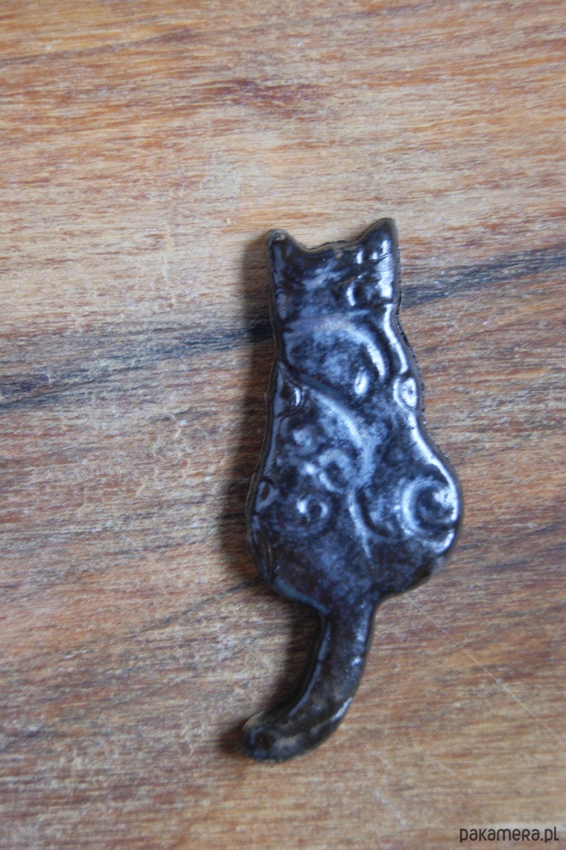 Uroczy ceramiczny magnes na lodówkę - siedzący tyłem kotek.