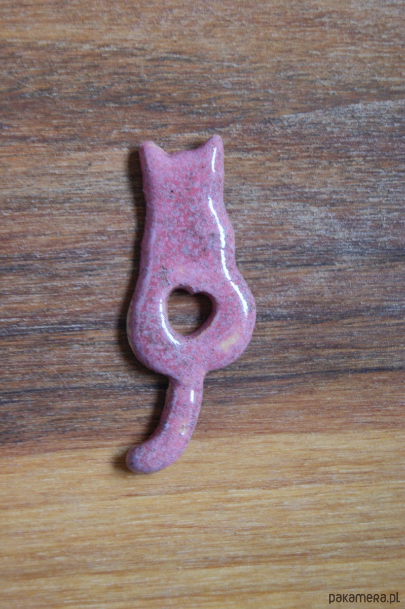 Ceramiczny magnes kot różowy z sercem