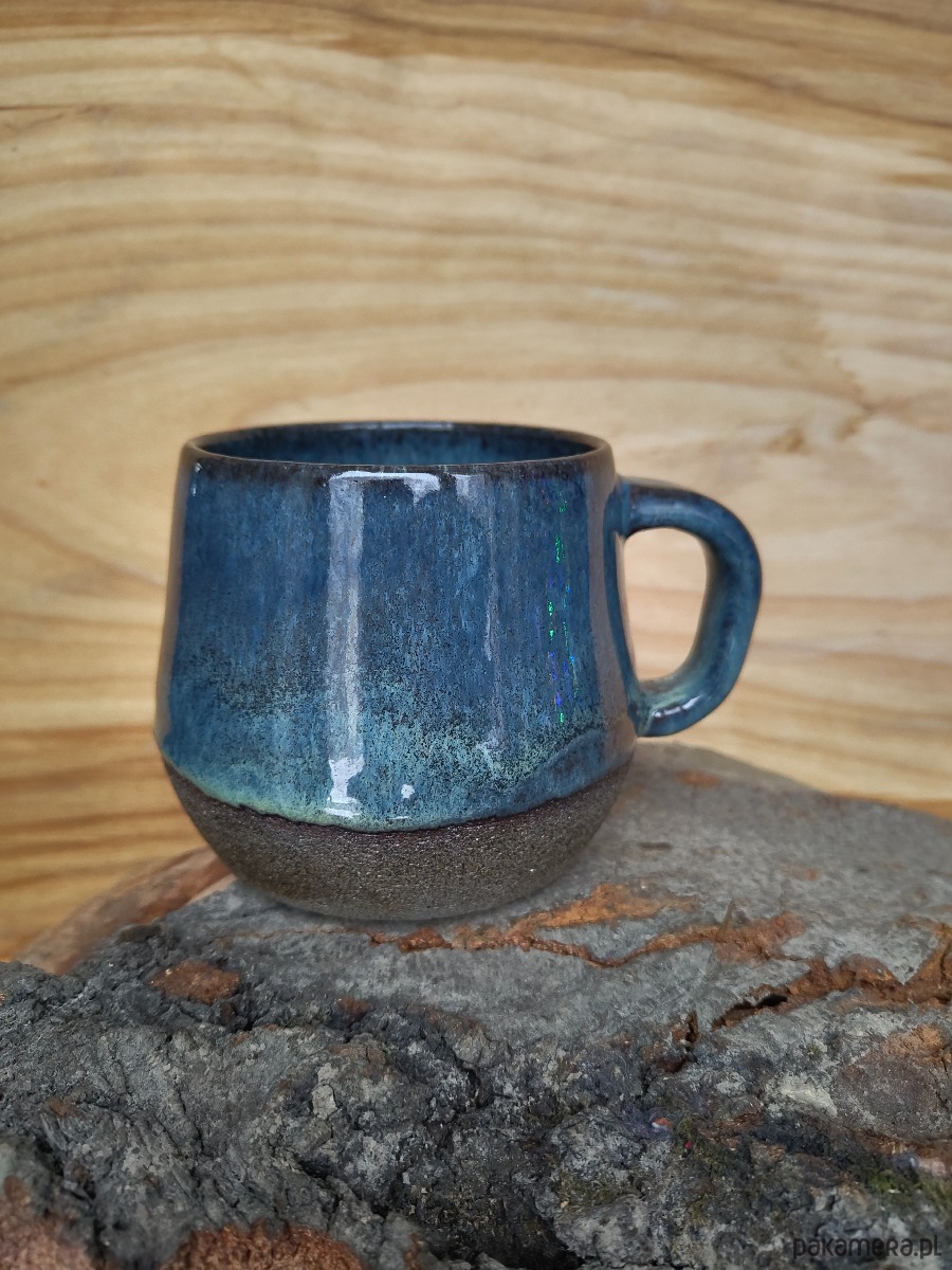 wykonany ręcznie, toczony na kole z gliny w kolorze szarej skały , szkliwiony mieszanką dwóch szkliw, co daje niepowtarzalny efekt ,