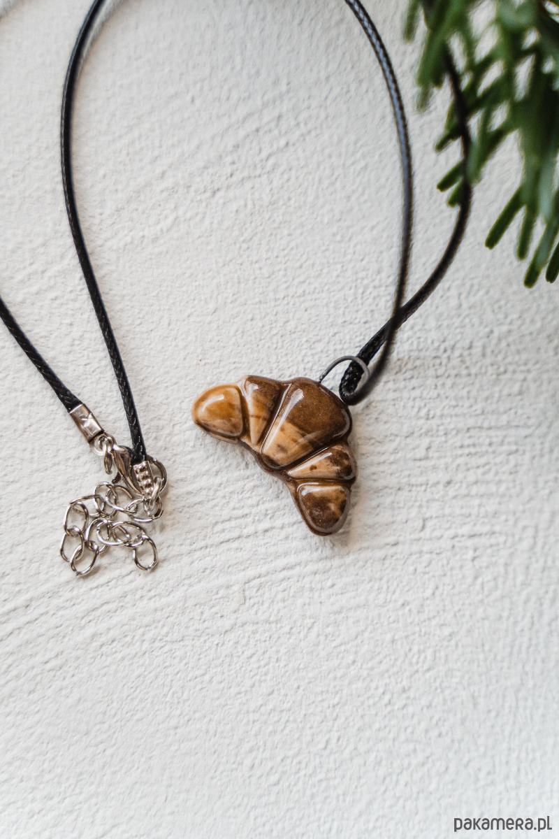 Ten naszyjnik został wykonany z najwyższej jakości gliny i jest pokryty błyszczącym szkliwem. Wisior nawleczony jest na wegański, czarny rzemień o regulowanej długości.