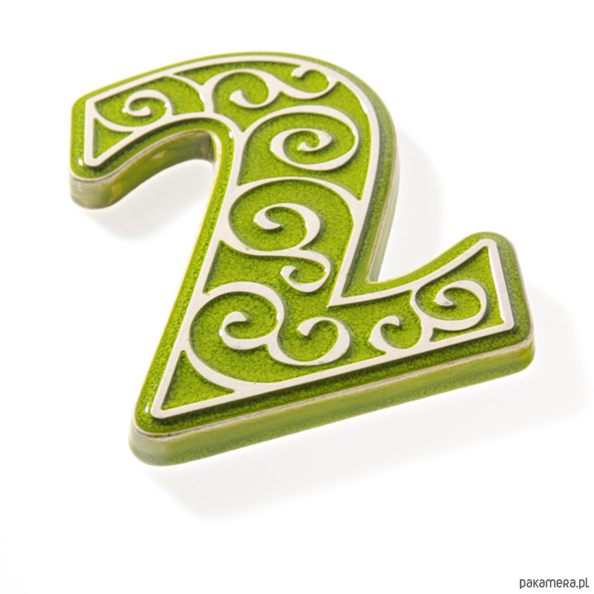 Ceramiczny numer domu, cyfra 2 jasnozielona, ręcznie robiona