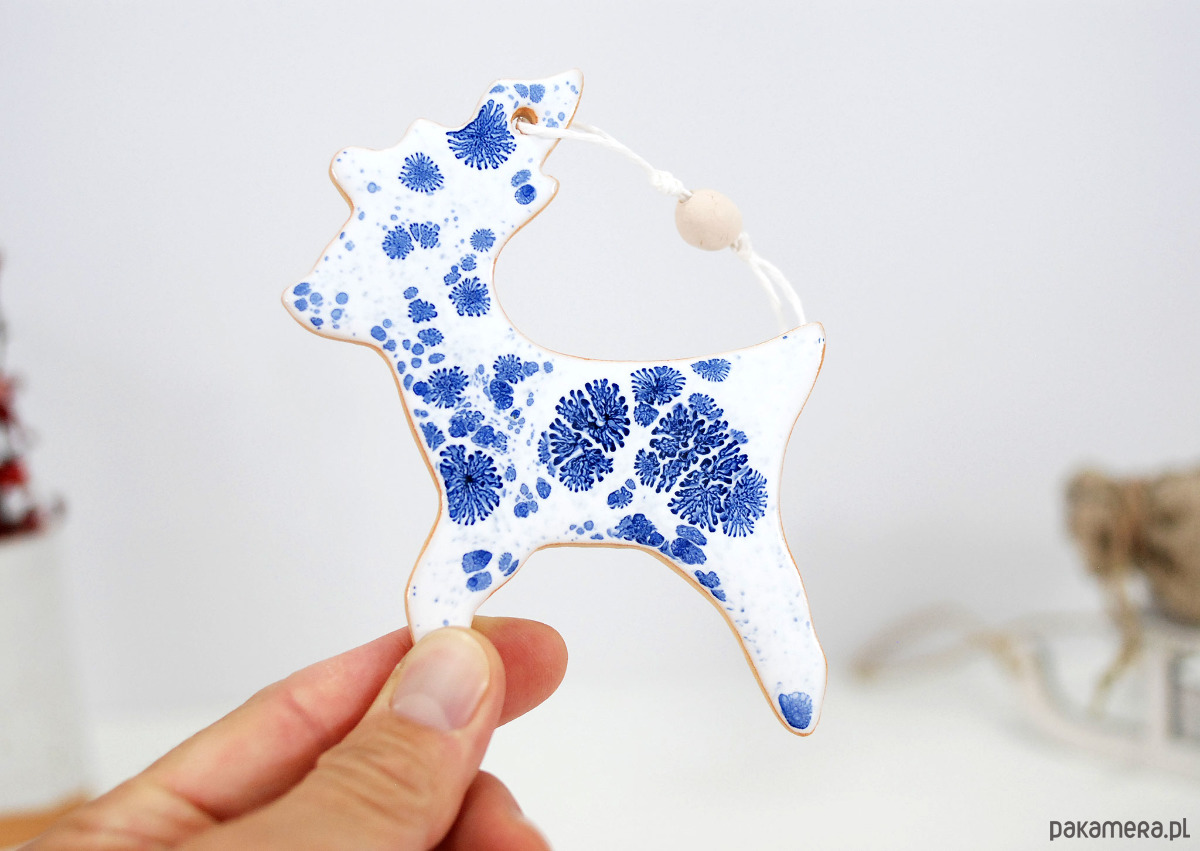 1 ręcznie robiony i malowany, ceramiczny renifer.