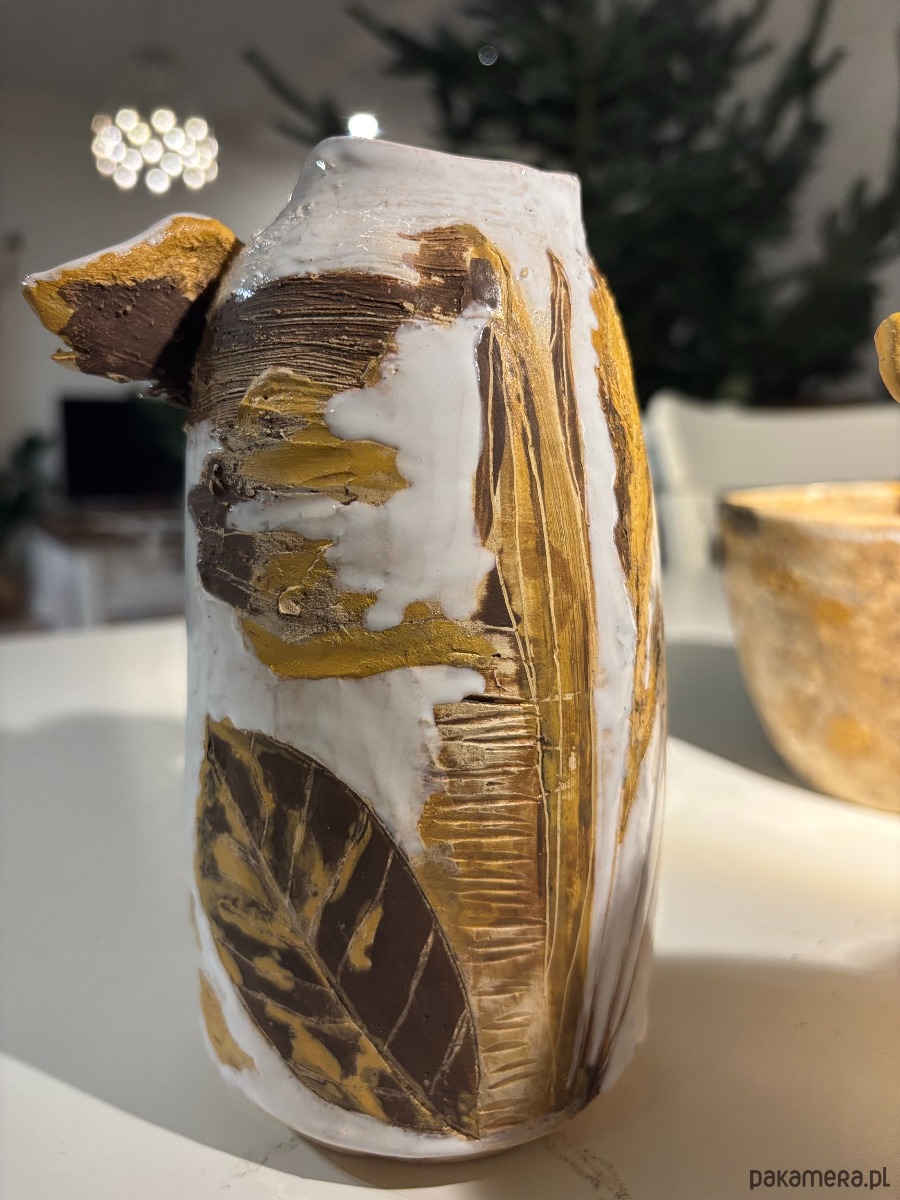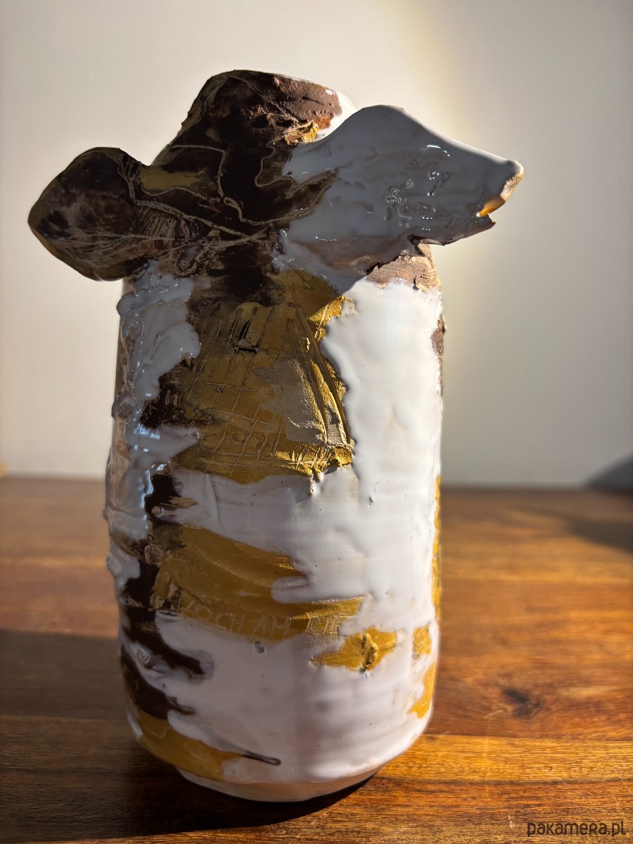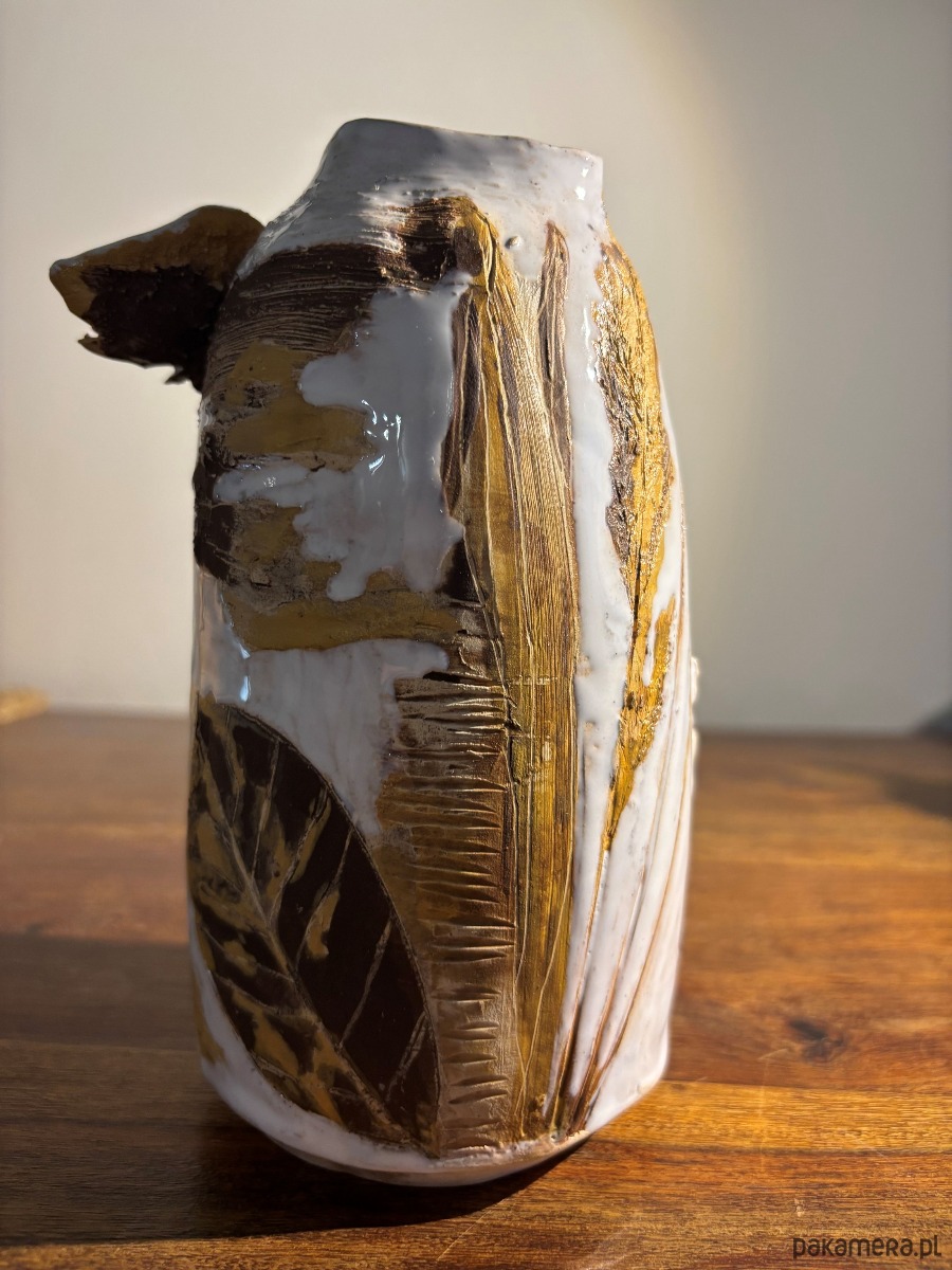Ceramiczny, skrzydlaty wazon -Anioł. Wykonany ręcznie. Unikat. Opowiada swoją własną historię, historię ziemi, ognia, wody i powietrza. Nieprzewidywalny i jednocześnie bardzo spokojny - jak promienie słońca na twarzy w chłodny, mroźny dzień. Maluje uśmiech odbiorców.