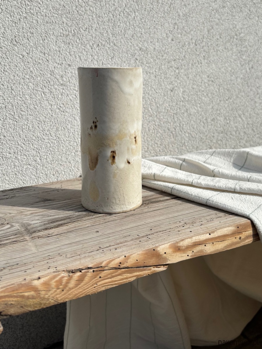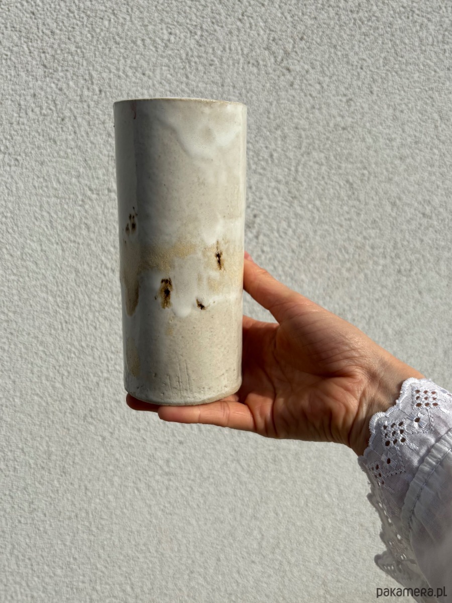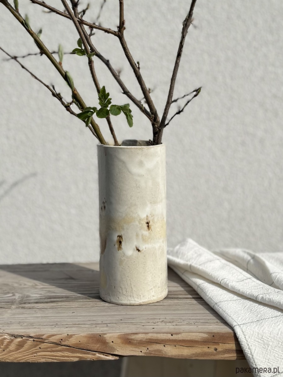 Ręcznie formowany ceramiczny wazon w skandynawskim stylu o unikatowym szkliwieniu inspirowanym wiosną.