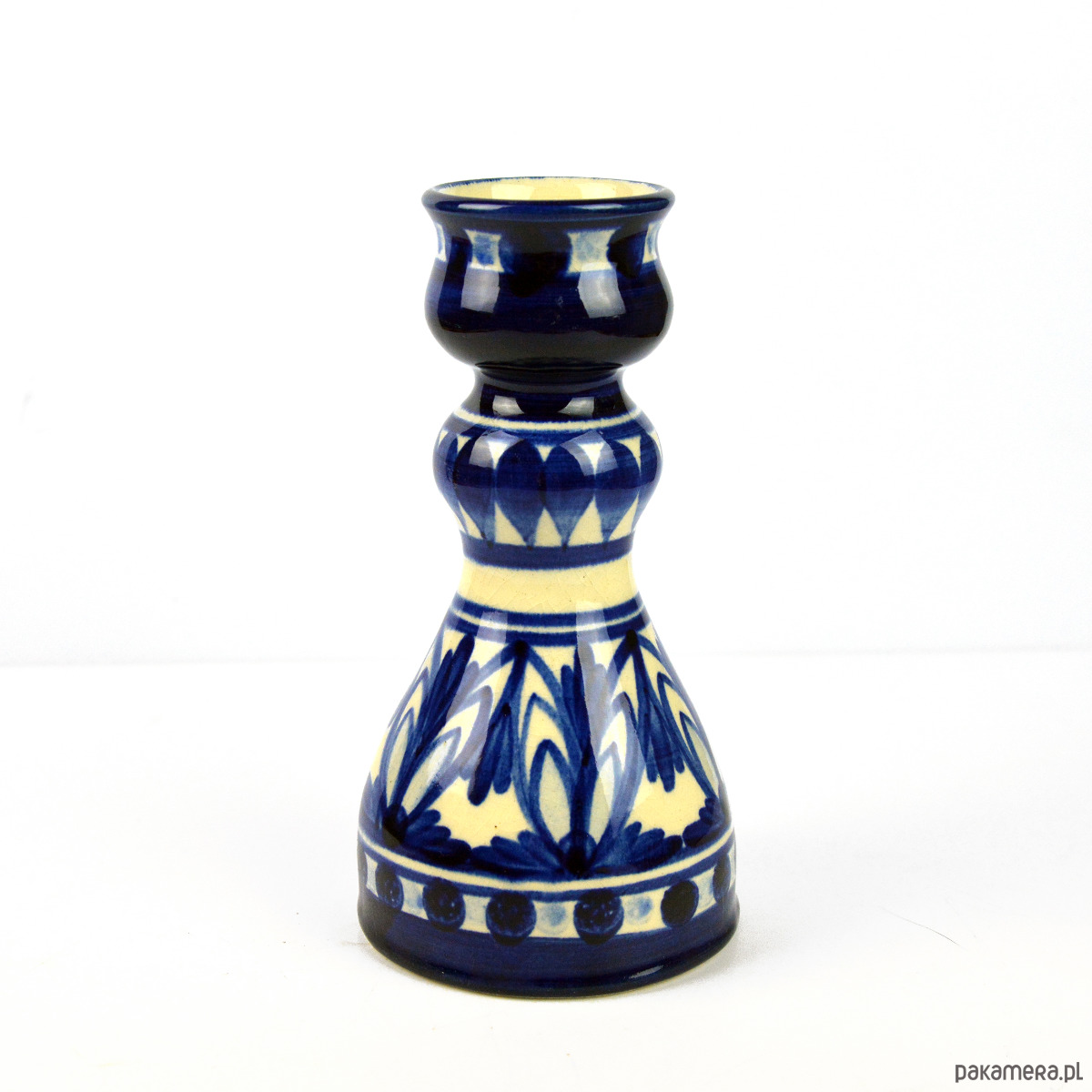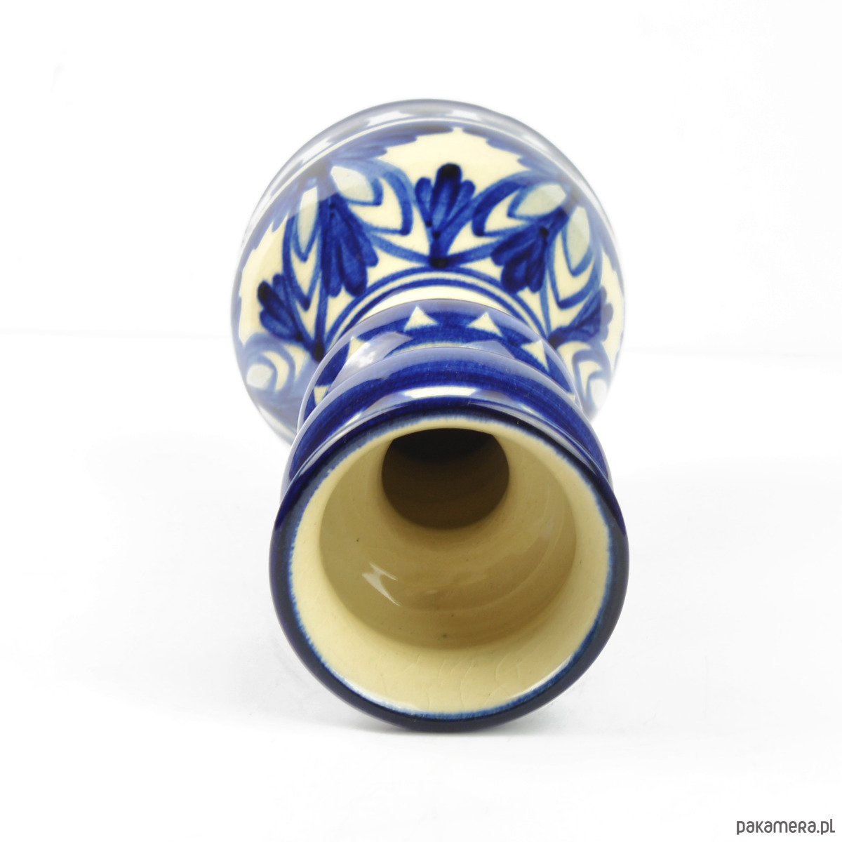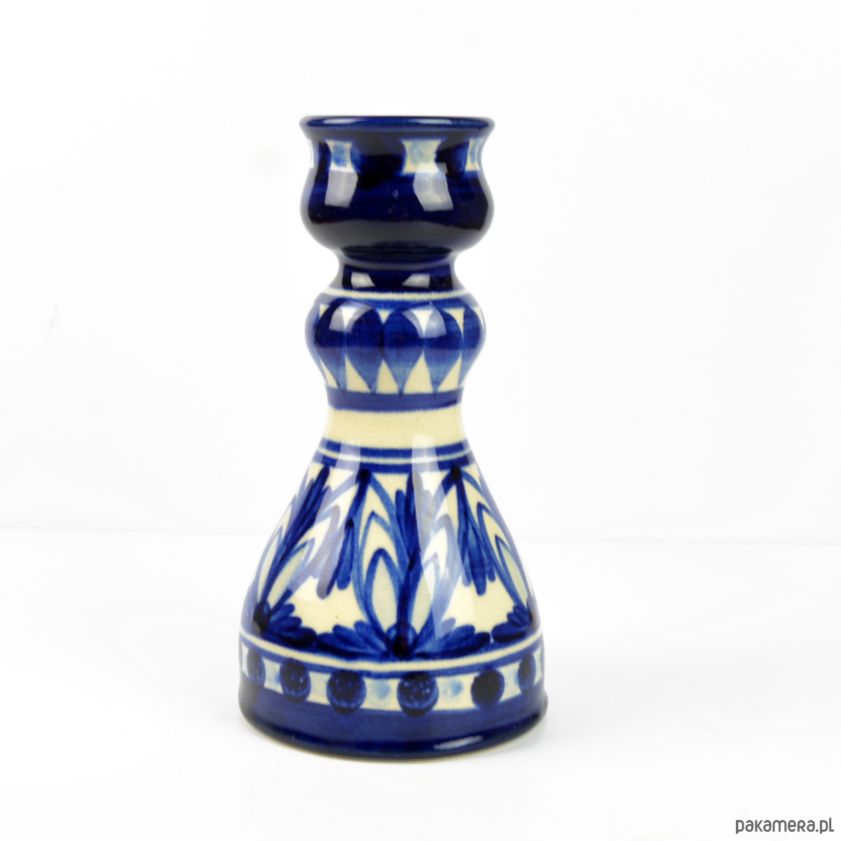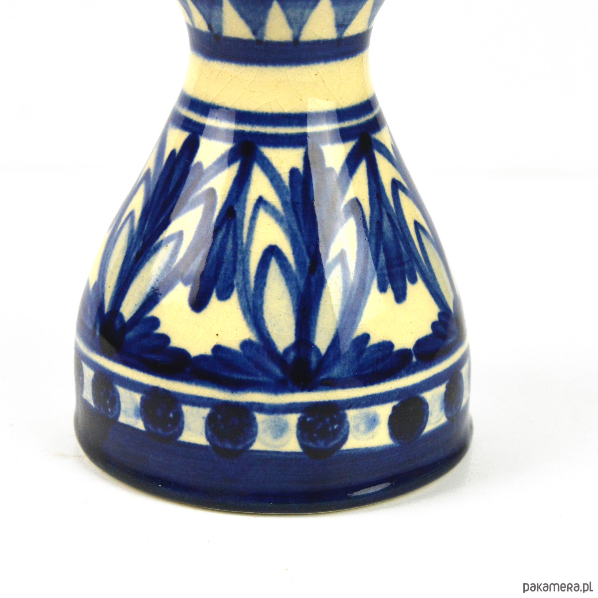 Ceramiczny wazon w stylu modernistycznym z kobaltowym zdobieniem w stylu rustykalnym został wykonany w Niemczech dla KLL Karl Louis Lehmann gegr.1834 w połowie XX wieku. Wazon w kolorze beżowym z kobaltową malaturą, szkliwiony. Wazon wykonany i malowany ręcznie. Zachowany jest w bardzo dobrym stanie. Od spodu sygnowany. Na innej naszej aukcji znajdziecie jeszcze inny wazon z tej wytwórni.