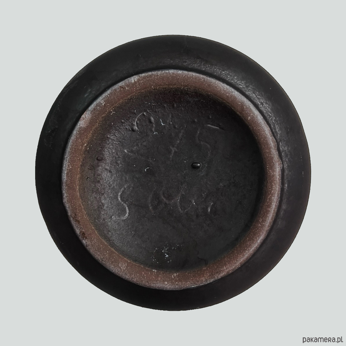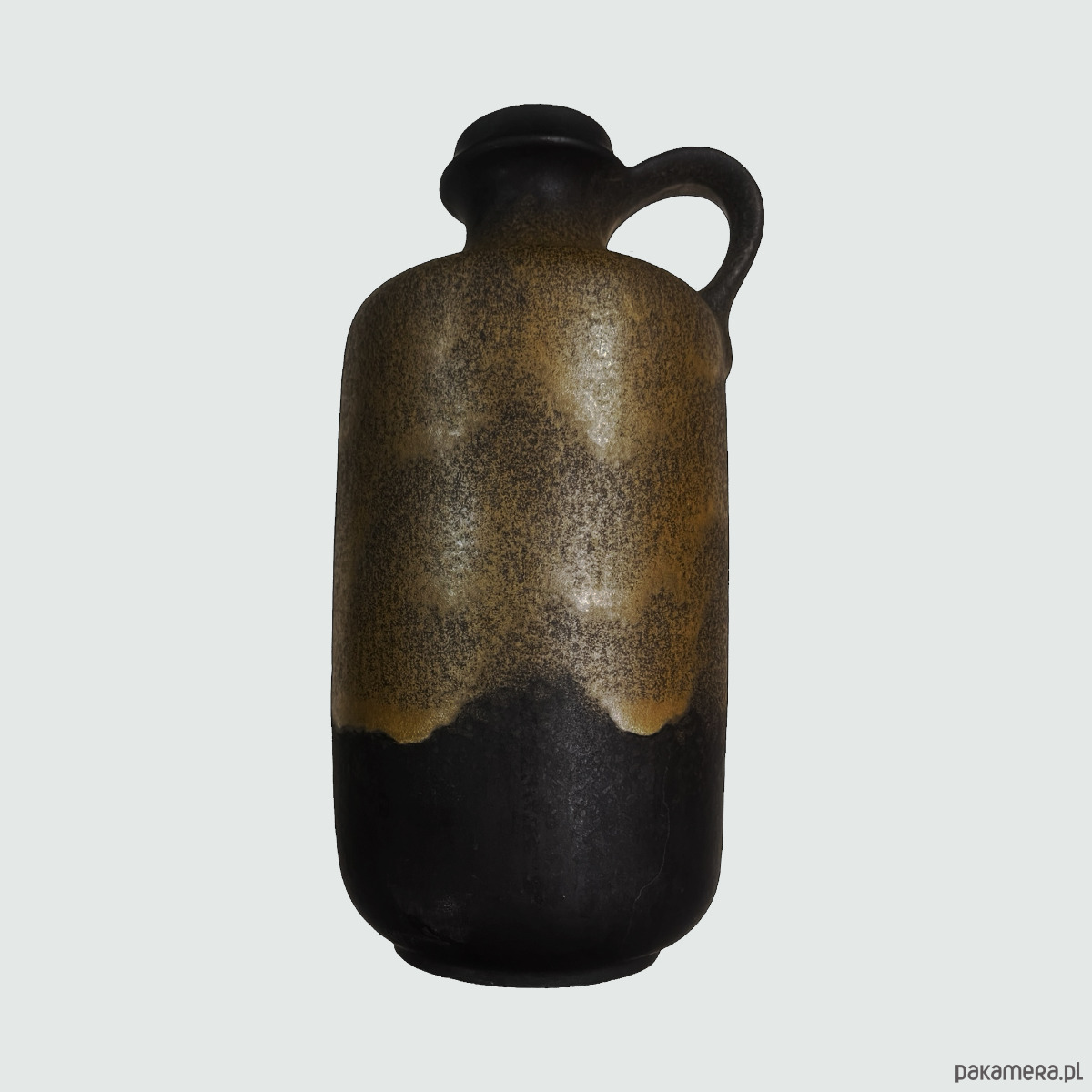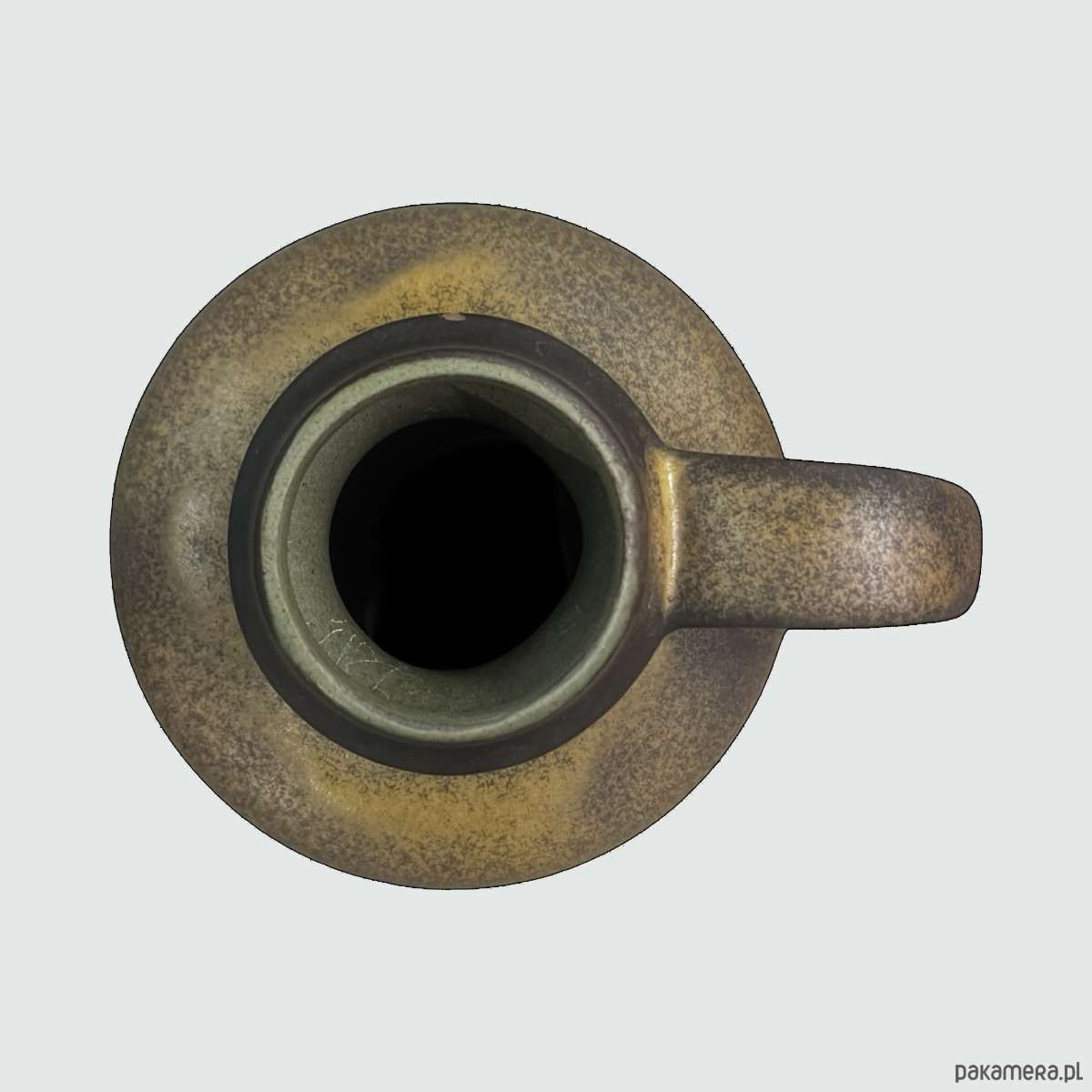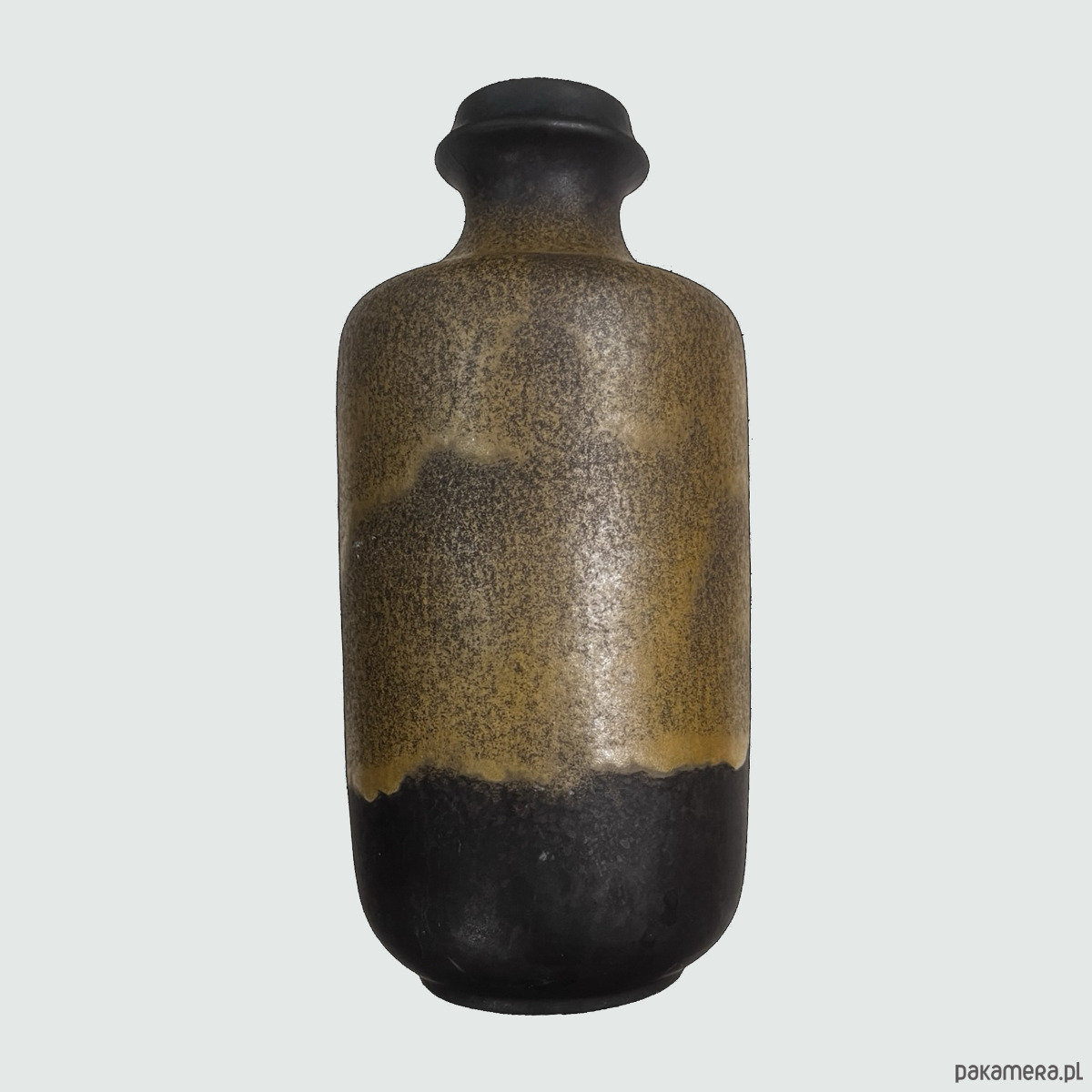 Ceramiczny wazon w stylu modernistycznym z elementami klasycystycznymi został wykonany w Niemczech dla Ceramano Gobi West Germany w latach 70. XX wieku. Wazon w kolorach gliny i zieleni i brązu malatura strukturalna tylu sahara, wewnątrz pokryty szaro-zieloną emalią. Zachowany jest w bardzo dobrym stanie. Od spodu sygnowany.