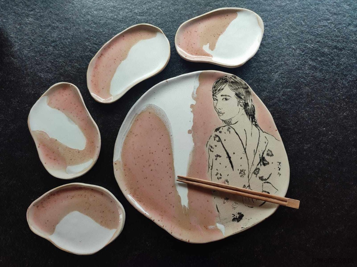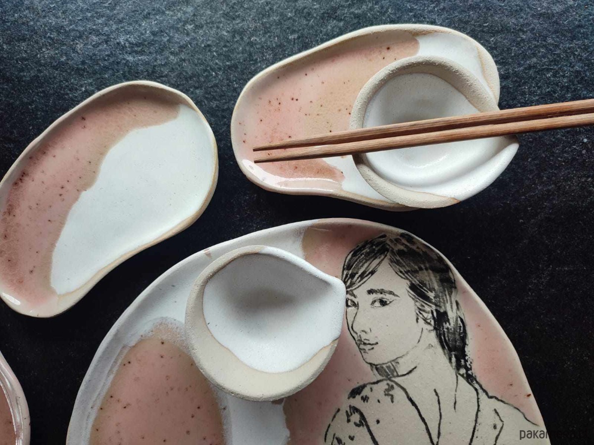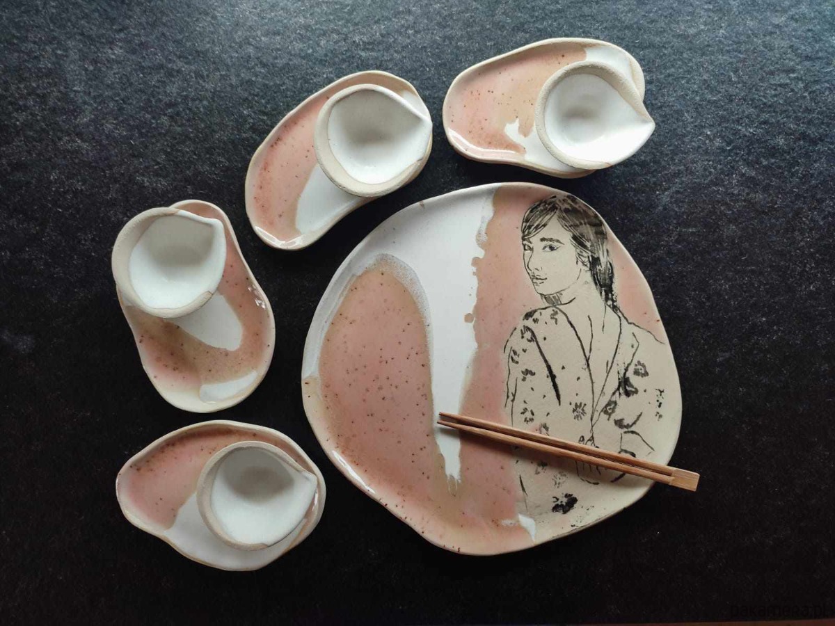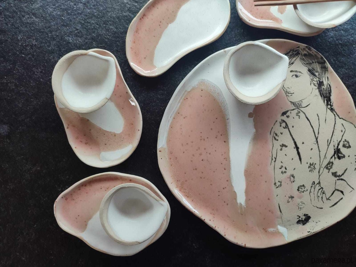 Ceramiczny ręcznie wykonany zestaw do sushi dla 4 osób